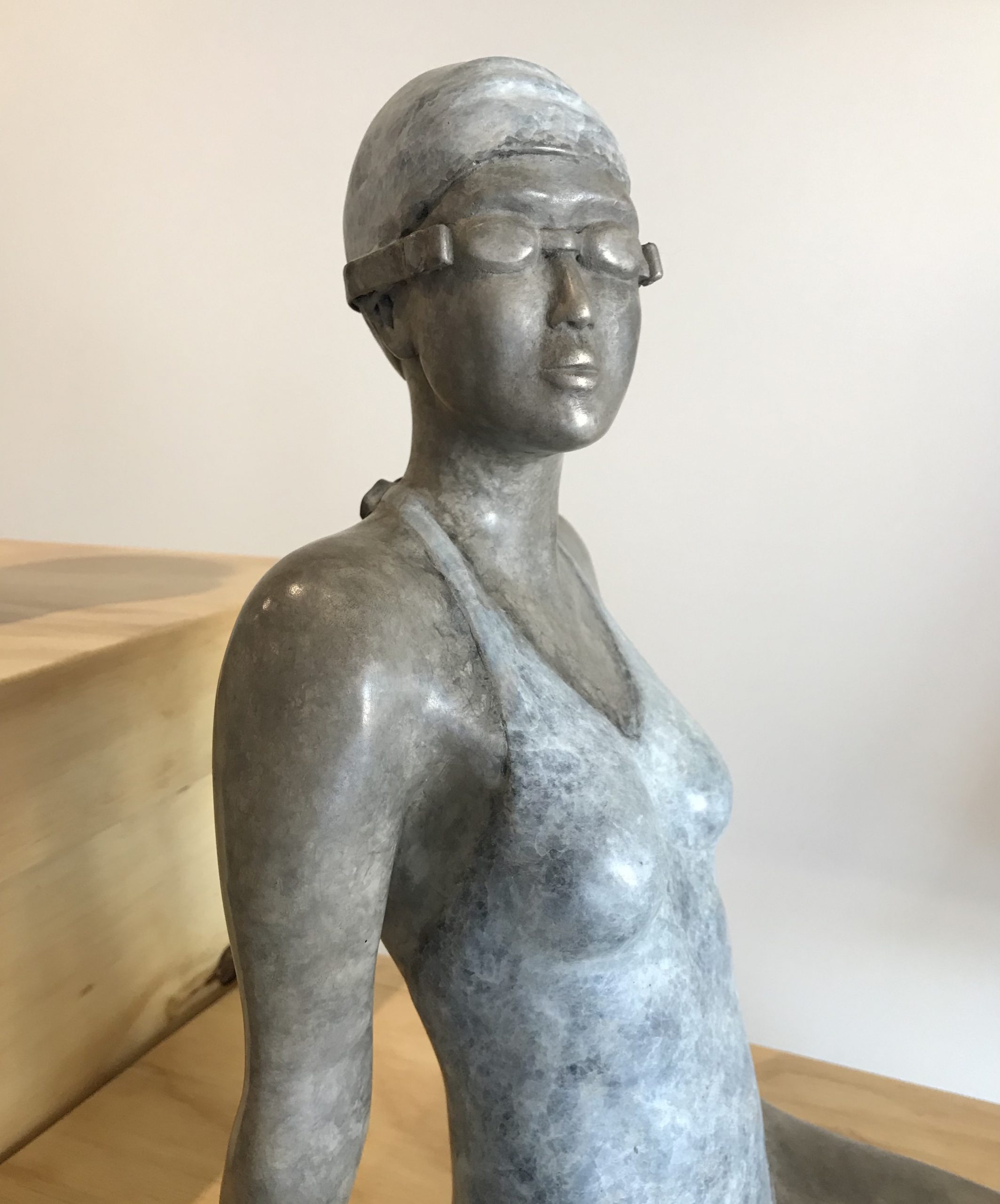 Bronze sculpture with grey/pale blue patina
