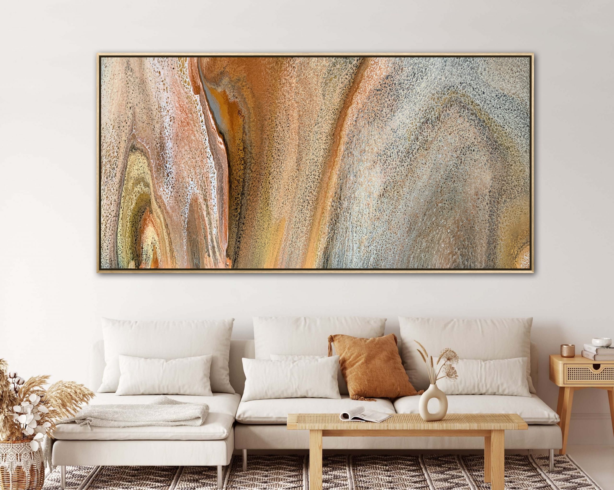 Earth and Sand by Angela Roskell – an extra large multi-directional abstract acrylic painting stretched and ready to hang.