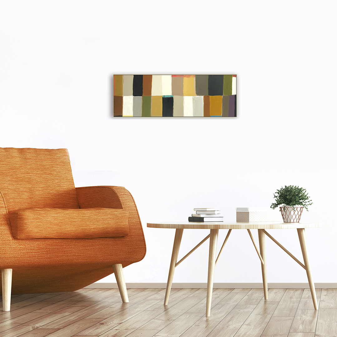 Earth Songs by Simon Palmer – An original abstract painting depicting earthy tones, reminiscent of the Australian outback and heritage colours. It’s part of my recent experimentations with a simplified graphic format and natural tones.