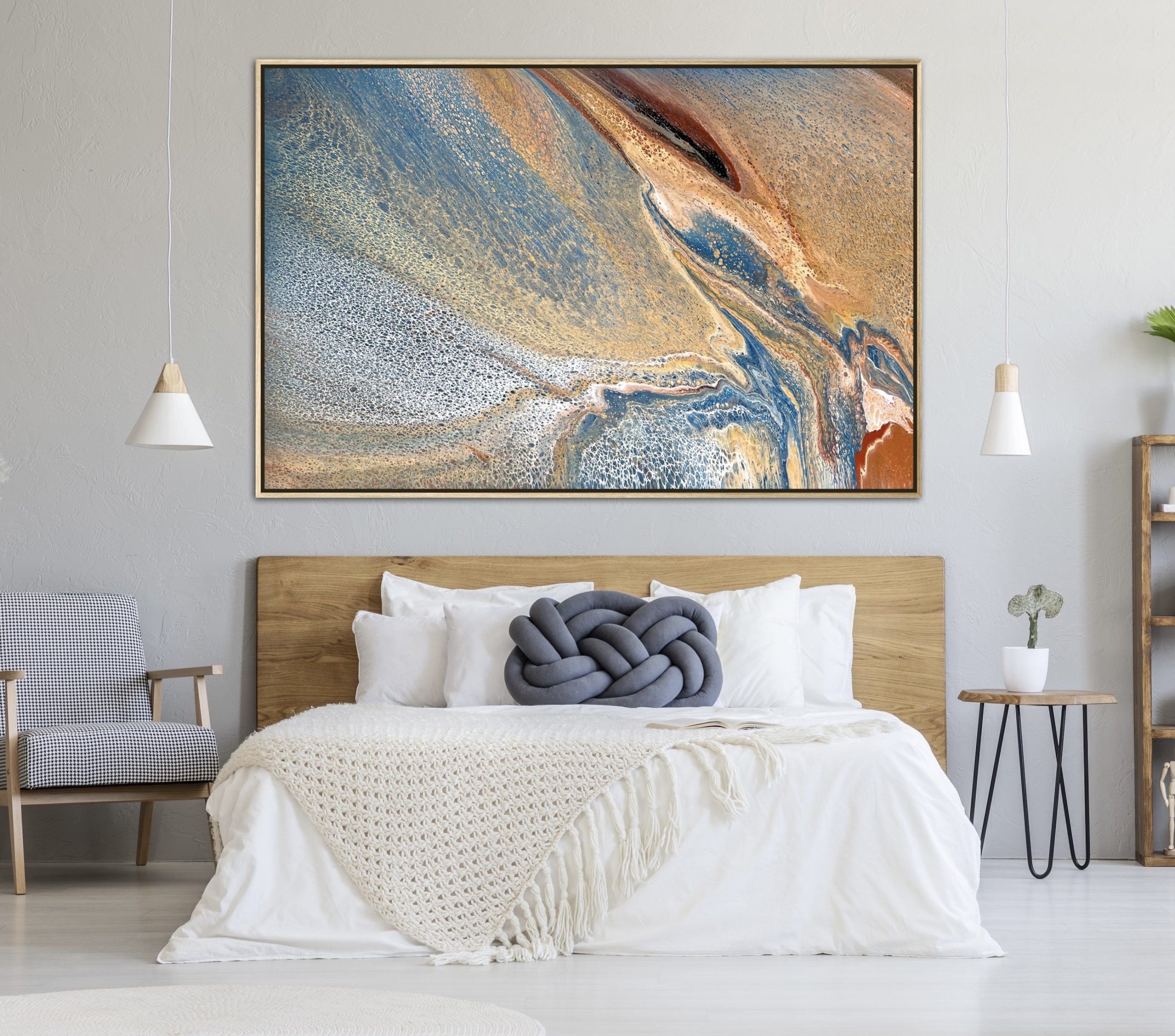 Earth Untouched was created using various techniques combined to allow increased flow, interaction and separation of colours to create interesting patterns where pops of colour can be seen emerging from underneath. This added dimension adds lace and cells to the artwork creating an interesting and one of a kind painting that can never be replicated. A gorgeous variety acrylic pigments were used including metallic yellow and warm gold, cream, yellow, blues, bronze, copper, silver, grey, black, rose gold and white.