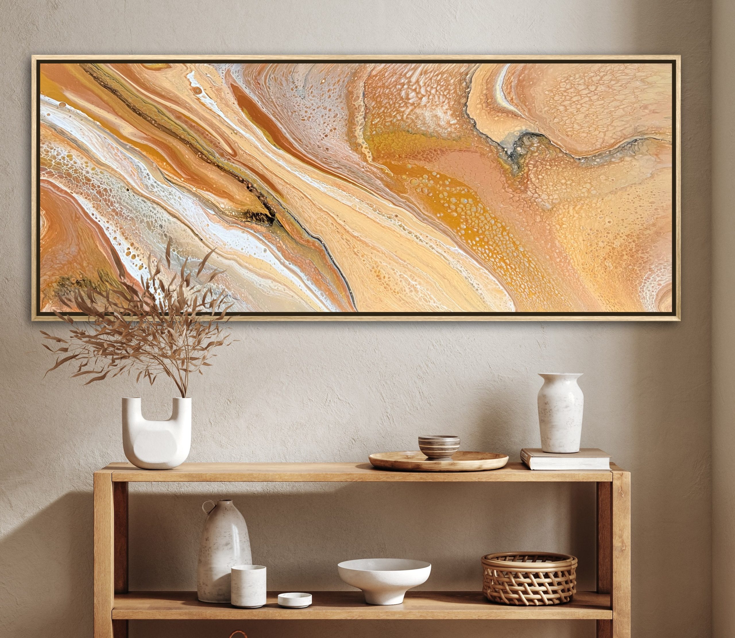 Earths Caress by Angela Roskell – an extra large multi-directional abstract acrylic painting stretched and ready to hang. Exclusive to Art Lovers Australia