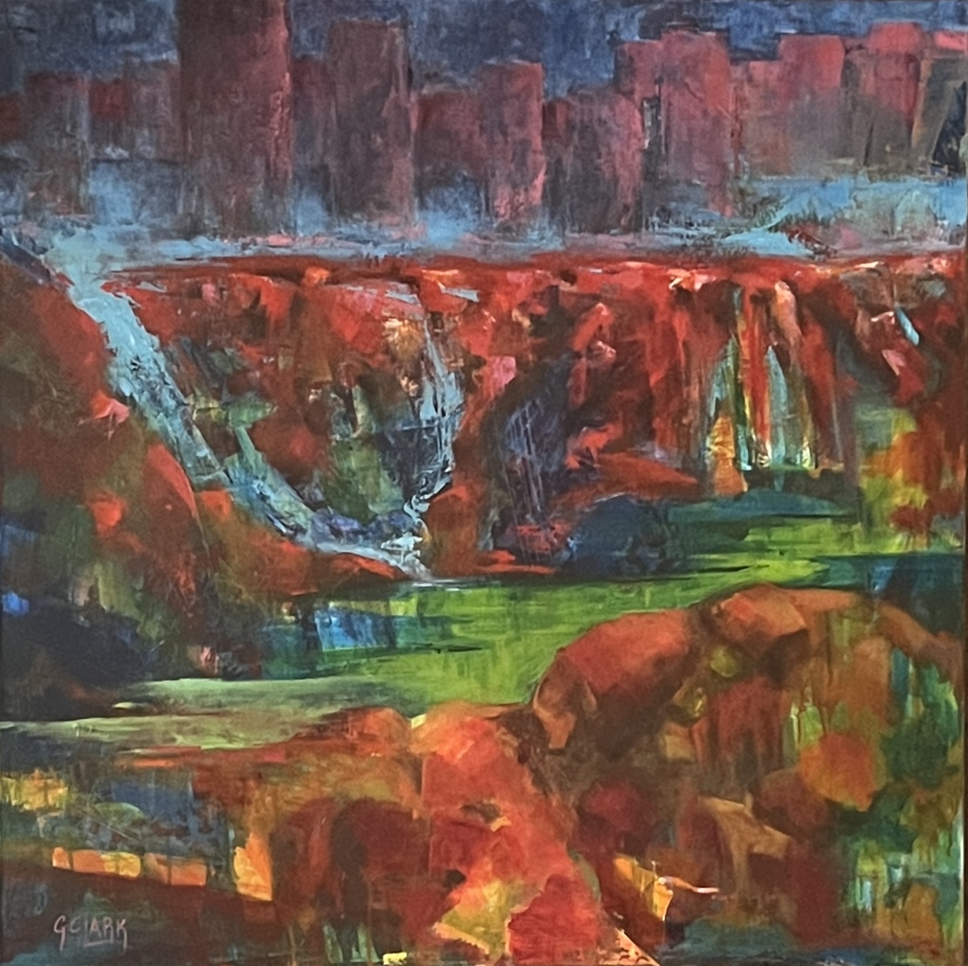 Underpainted with acrylic for luminosity. oil paint in palette knife, brush work and various implements. This work was painted intuitively from my imagination. It is on a hand stretched canvas using excellent quality paints.