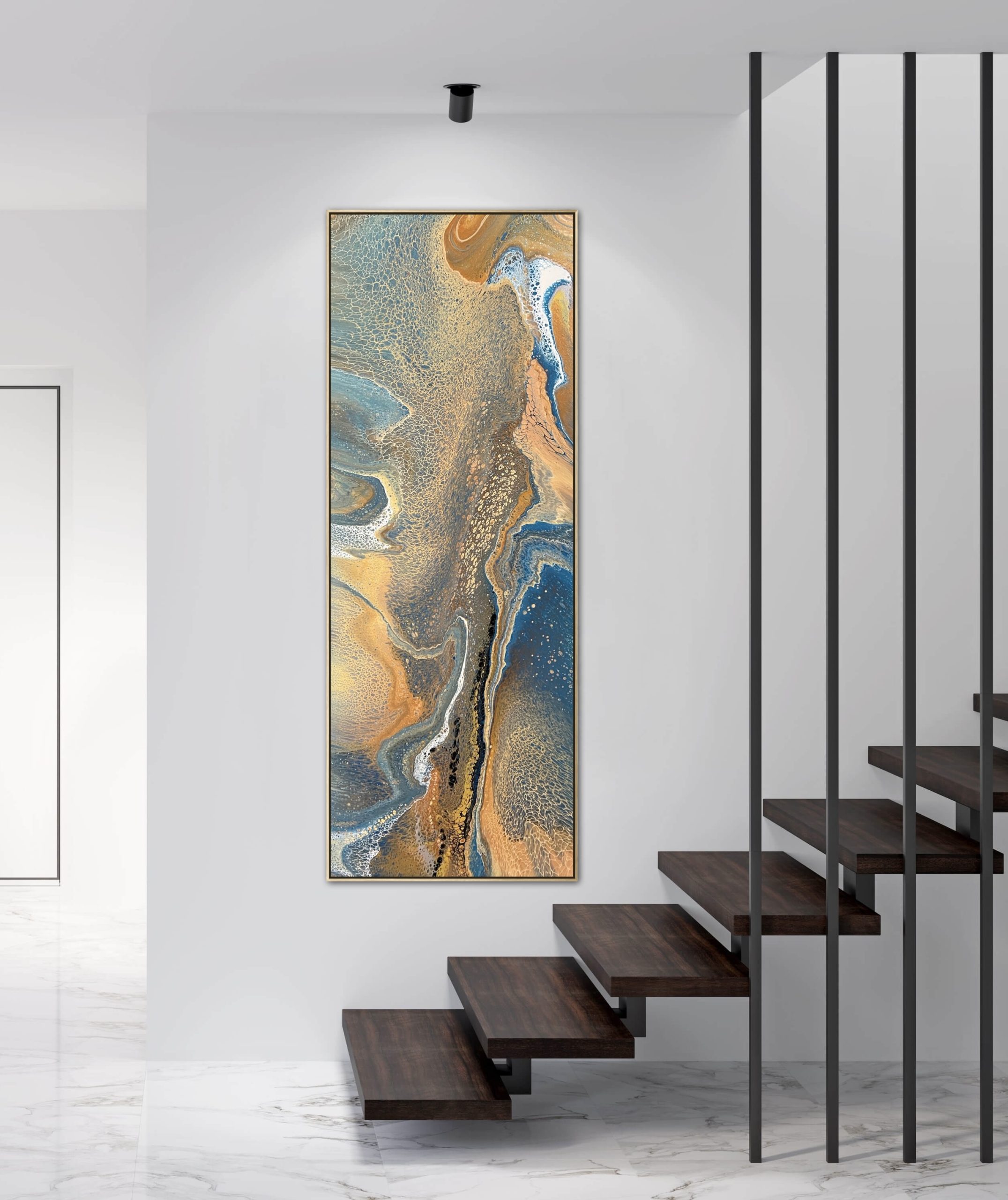 This artwork has been finished with layers of professional grade archival varnish for extra protection, colour enhancement and a beautiful smooth finish. The metallic paint used reflects the shifting light beautifully really bringing the painting to life.