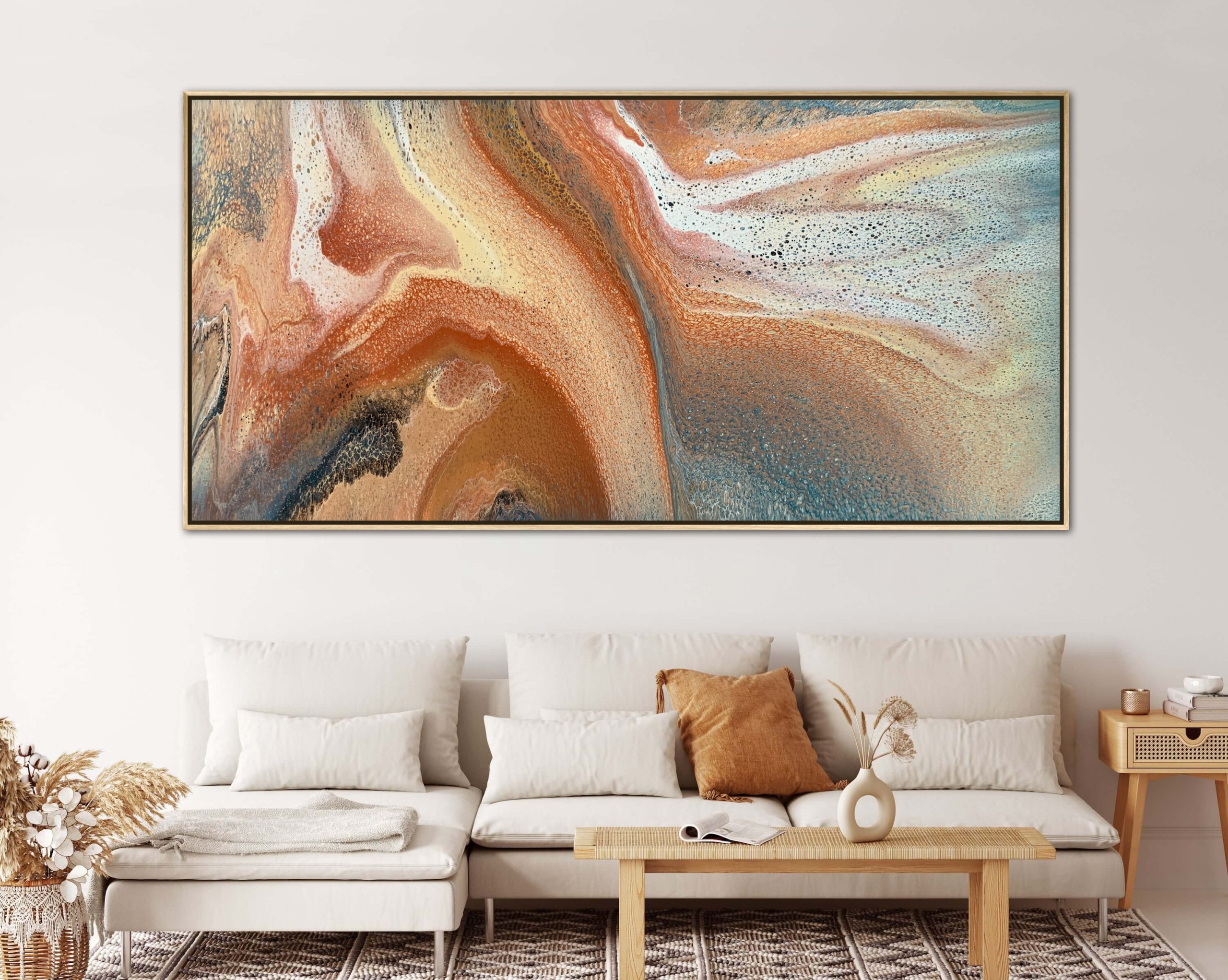 ‘In situ’ photos have been included to help with visualisation of the artwork in your home. In situ photos provided were created using the ArtStage app and may not be perfectly to scale. This being said, every effort has been made to represent the size of the art accurately but please read the dimensions of the artwork to ensure it fits your space perfectly. Where provided, photos of framed art are for illustrative purposes only.