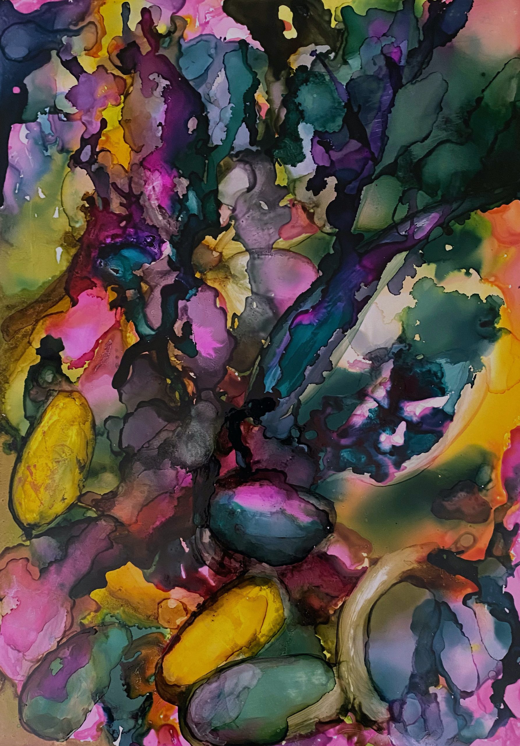 This painting by Christine Hyde is created using fabulous intense alcohol inks to provide a massive colour hit.