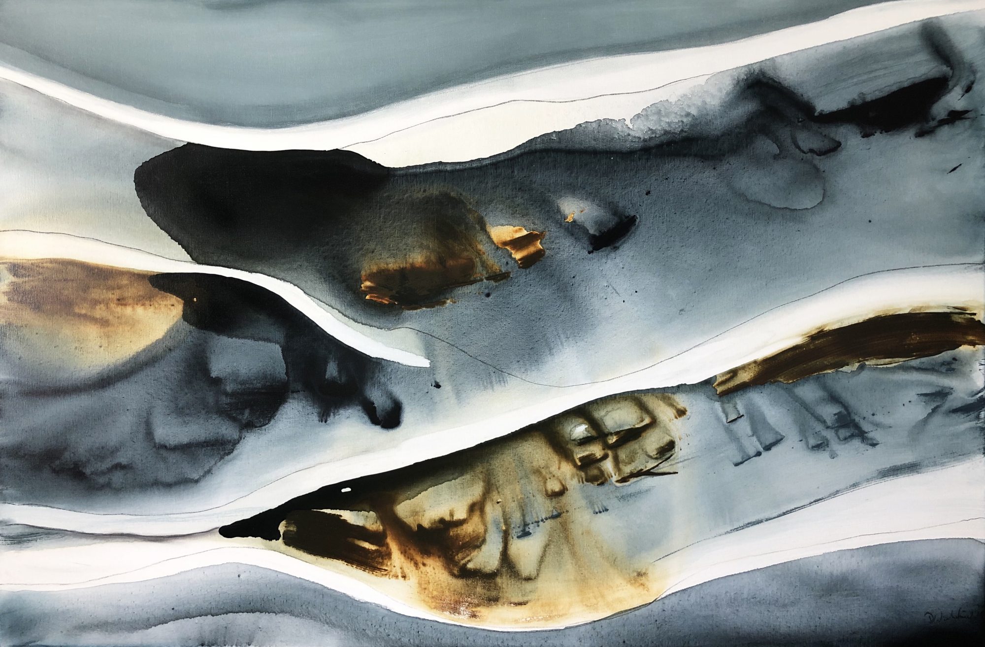 Ebb Tide is inspired by the light, the colours and the natural beauty of the Noosa region of Australia. “What I love most about Noosa is the interplay of light. From the oceans to the clouds, to the river estuaries and the hinterland, this canvas unfolds before me every day and finds expression in my paintings”.