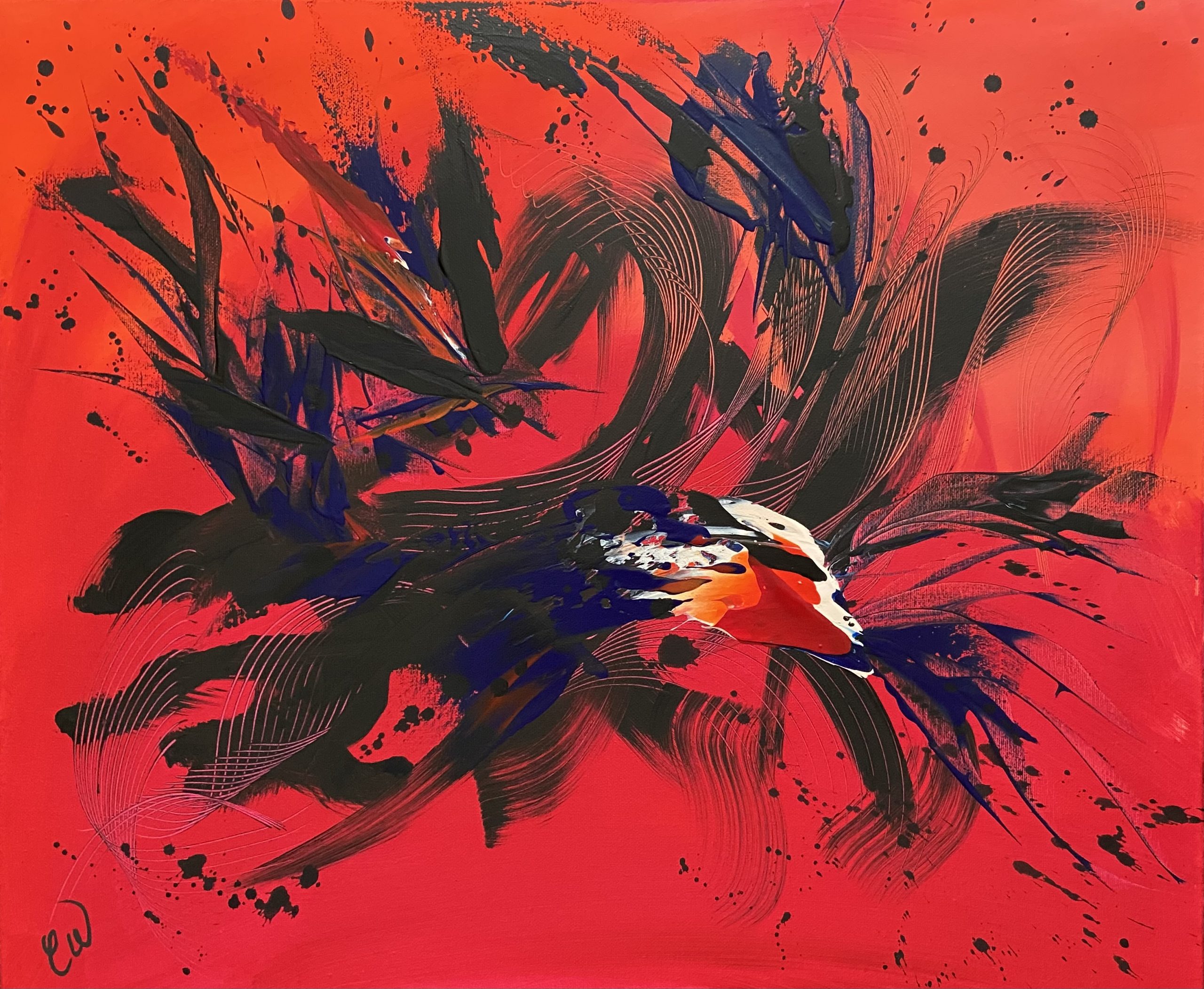 Ebbs And Flows by Carrie Welsh is a beautifully bright abstract piece that will give the walls in your home office the burst of colour it needs.  50 x 60 cm. Acrylic on canvas, ready to hang.