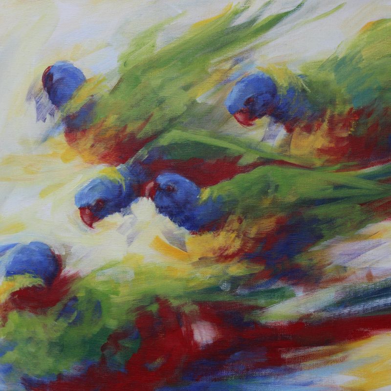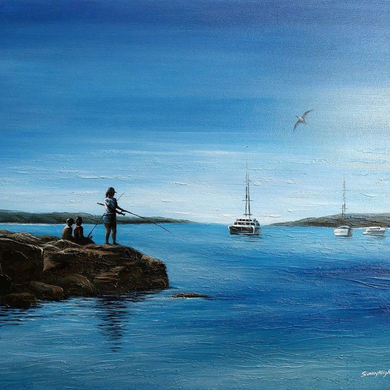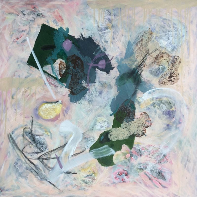 This piece is a beautiful abstract landscape/seascape with metallic details. Acrylic on canvas. Ready to hang. Frame not included.