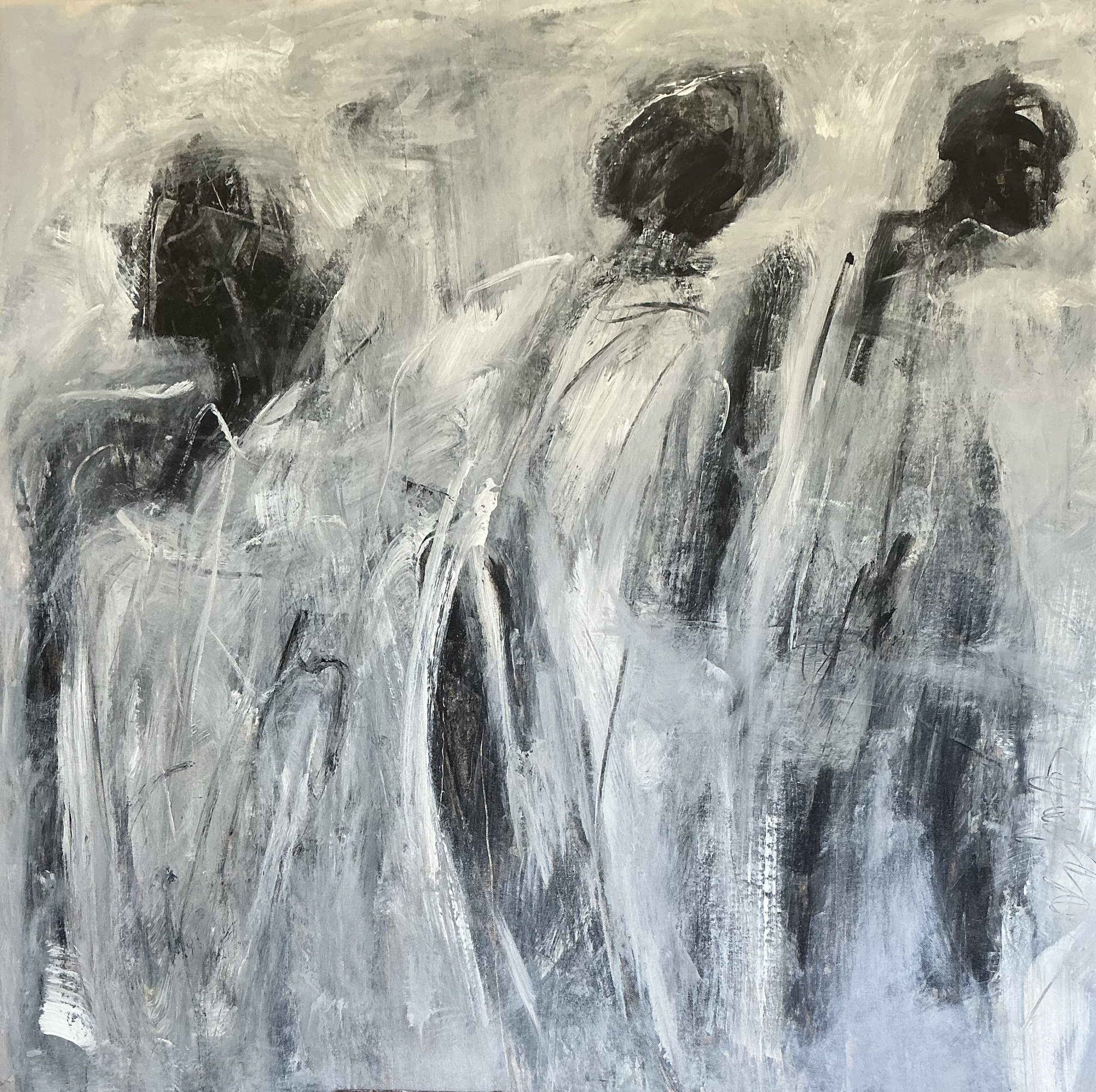 Loving Melbourne is easy. Its skyscrapers soaring to the sky, in shapes that are different, some in one colour, some multicoloured. Trips in the city trams are always fun. This work is influenced and inspired by them and the Melburnians. Not perhaps as colourful as its subjects, colours rather somber . Maybe, because it was raining when I created this? And the people are rather somber as well. But, painting it was fun!
