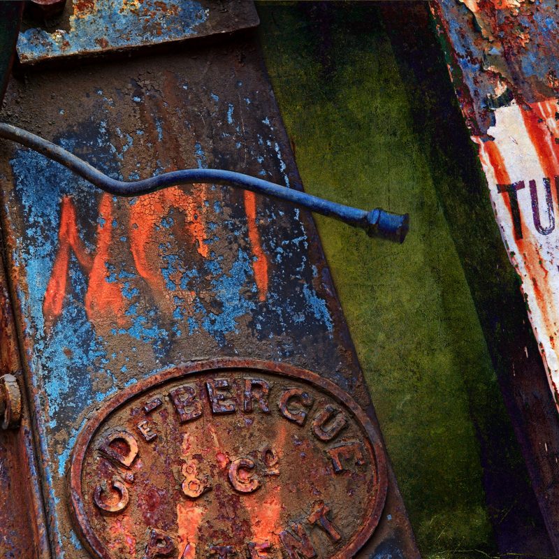 This artwork has broad luscious strokes in shades of blue, green and ochre.
