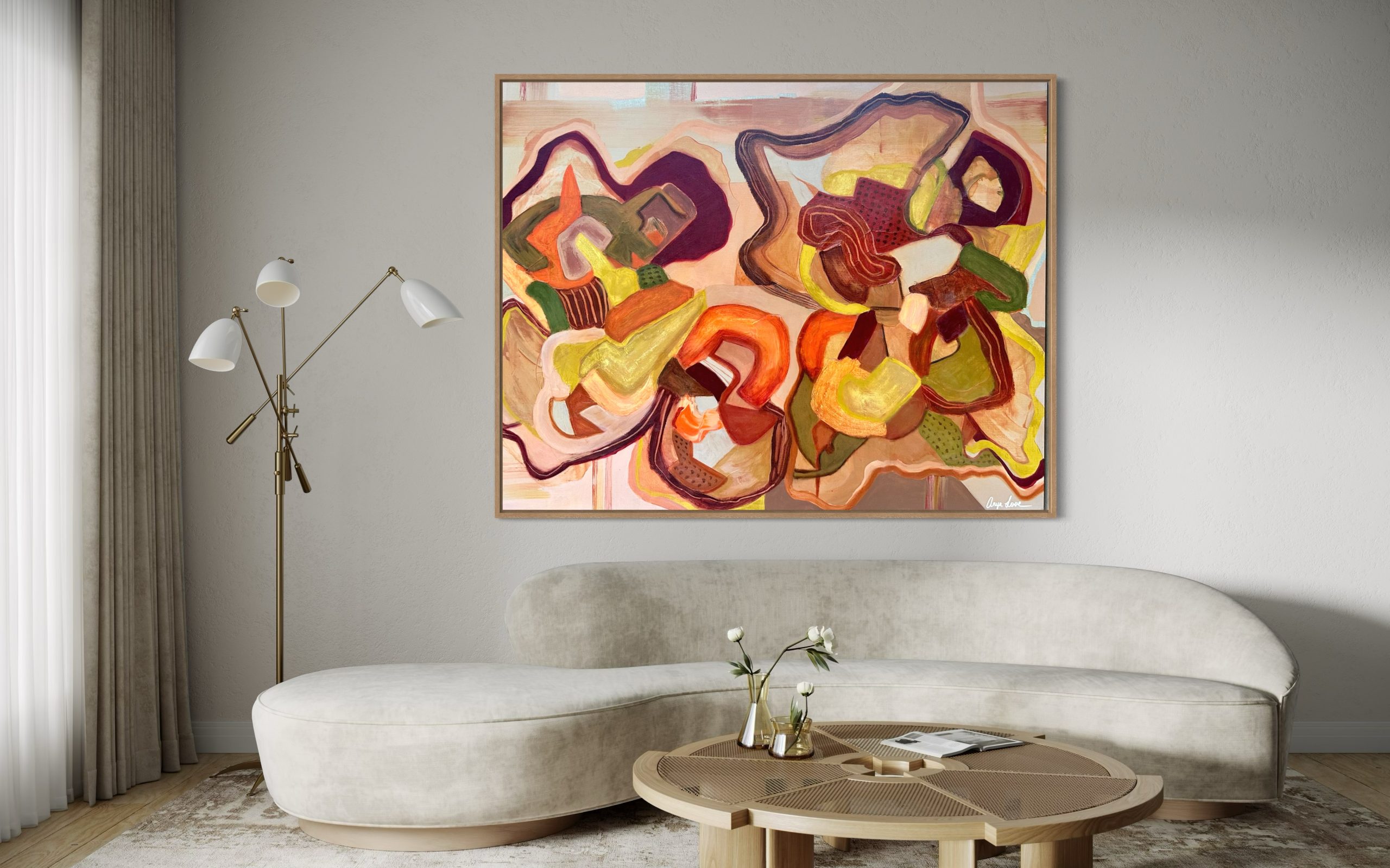 Original artwork. Impasto, Oil & oil sticks on stretched canvas FRAMED in an oak gallery shadow box frame. 80cm x 100cm.