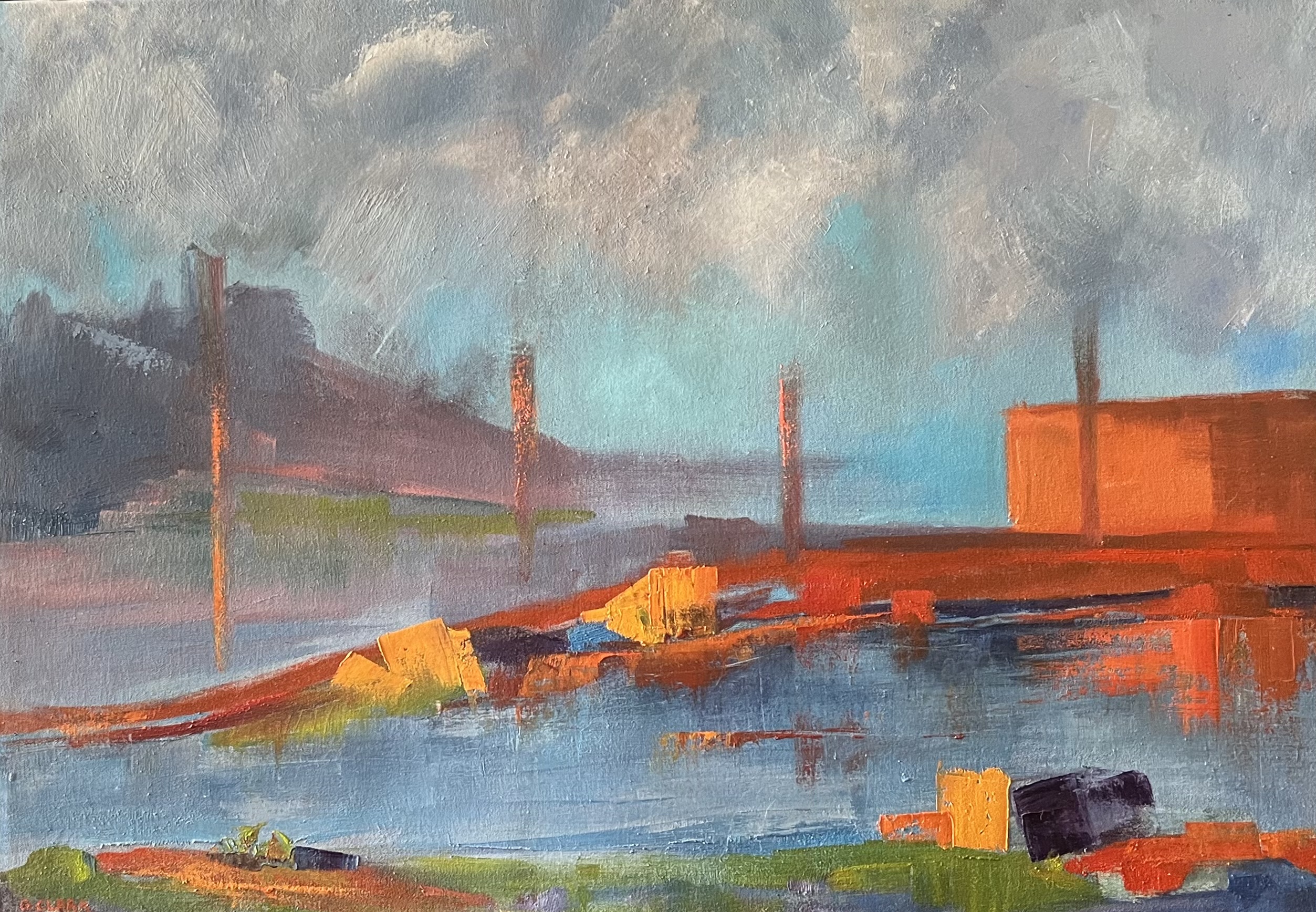 The ‘Echoes’ by Georgia Clark –  painting came straight from her imagination whilst I was pondering the passage of time. This particular moment I was thinking about our impact on the world and I imagined that the Earth would be able to heal itself once we had gone, even with all the abuse we’ve given it. Using premium oil paints. Professionally framed in Blackwood timber.