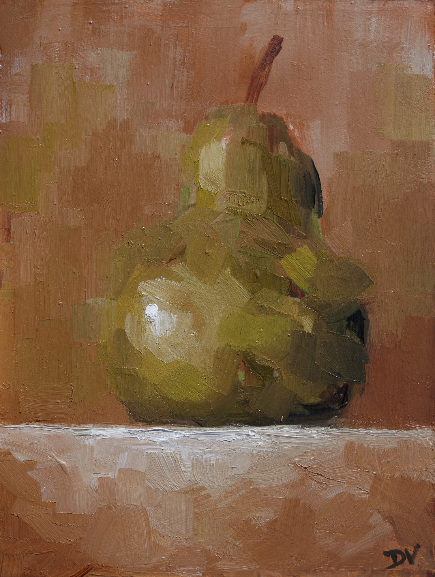 Part of a new series of still lifes where I began with a layer of Burnt Sienna and Unbleached Titanium. Once the composition was complete I added colour.