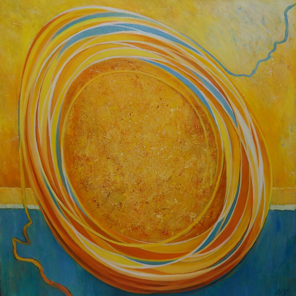 This painting is a joyful abstract artwork inspired by movement. I love the colours and the sensation that the egg is actually rolling!