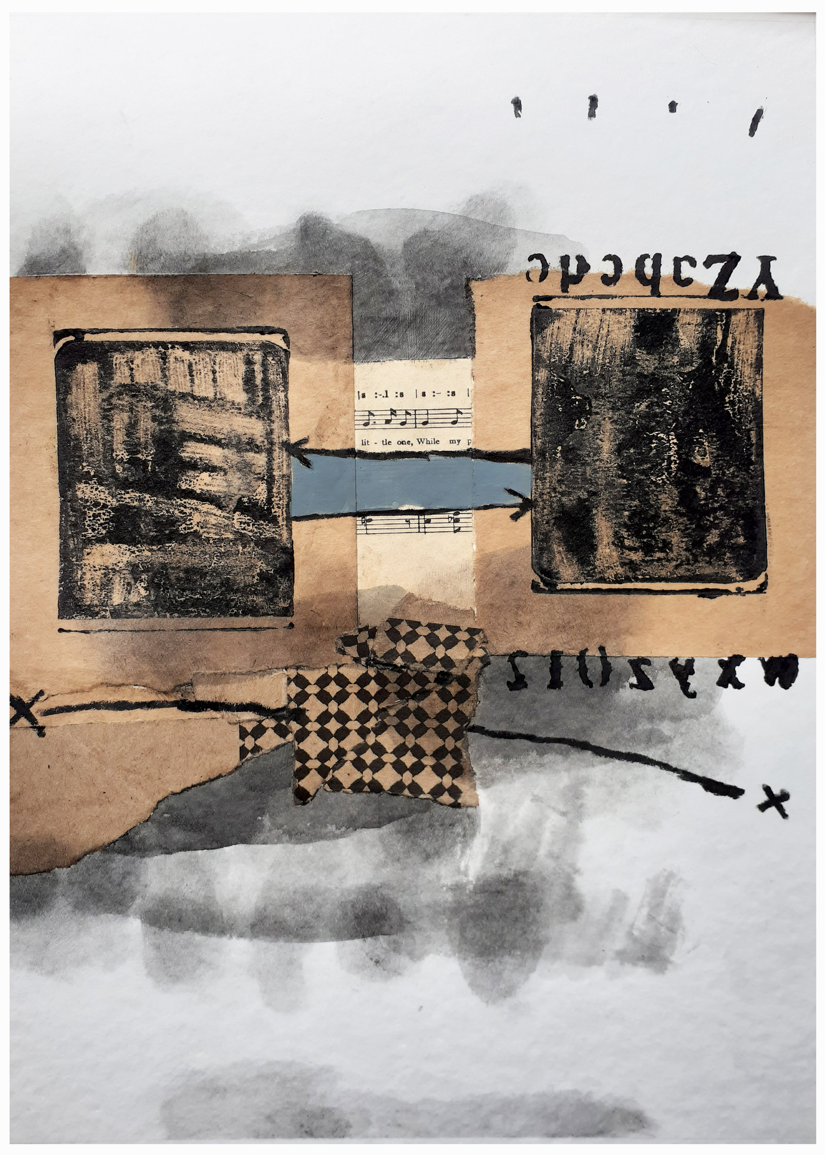 “Either Side” is an original mixed media artwork by G Kustom Kuhl that has been created on Lana artist paper [220gsm]. The work explores the idea of breaking minor patterns to move into an emotional state that bring balance and harmony. This such state allows levelling up in one’s journey through life. The use of pencils, inks, papers, stencils, paint, oil sticks and vintage printing plated that have been printed.