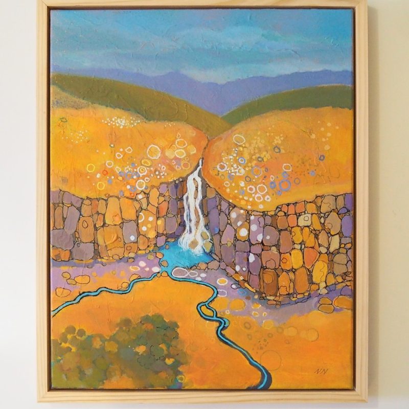 Electric Bloom by Kerrie Jacobs – Stunning original collage and paint on gallery wrapped canvas with the painting wrapping around the sides.