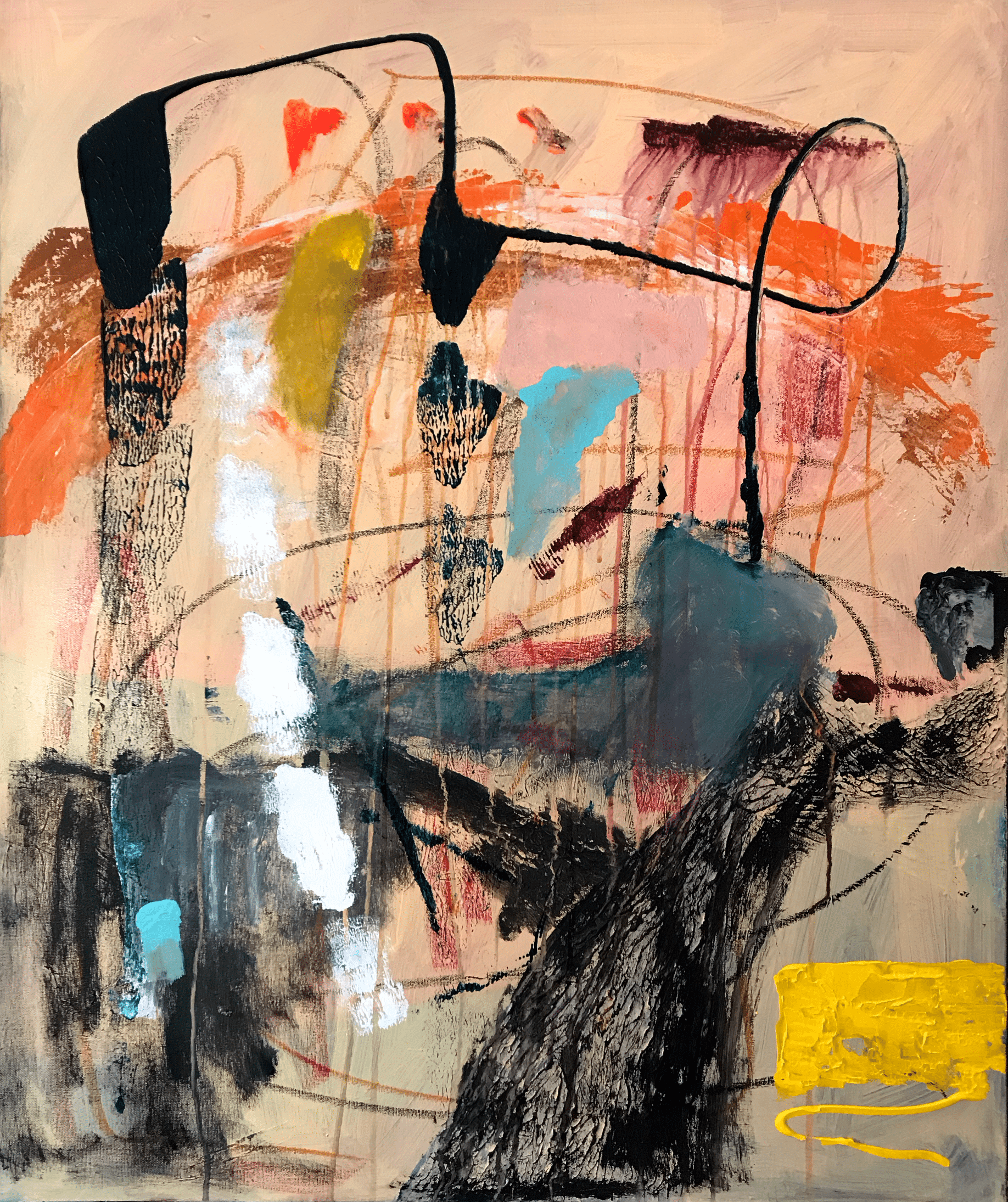 Acrylic and oil pastels on canvas
