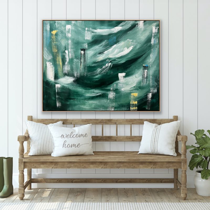 Acrylic medium on a stretched canvas, ready to hang with d-hooks and wire.This artwork comes with an external wooden frame. It is signed on the front and comes with a signed certificate of authenticity. This artwork is sealed with a Satin varnish.