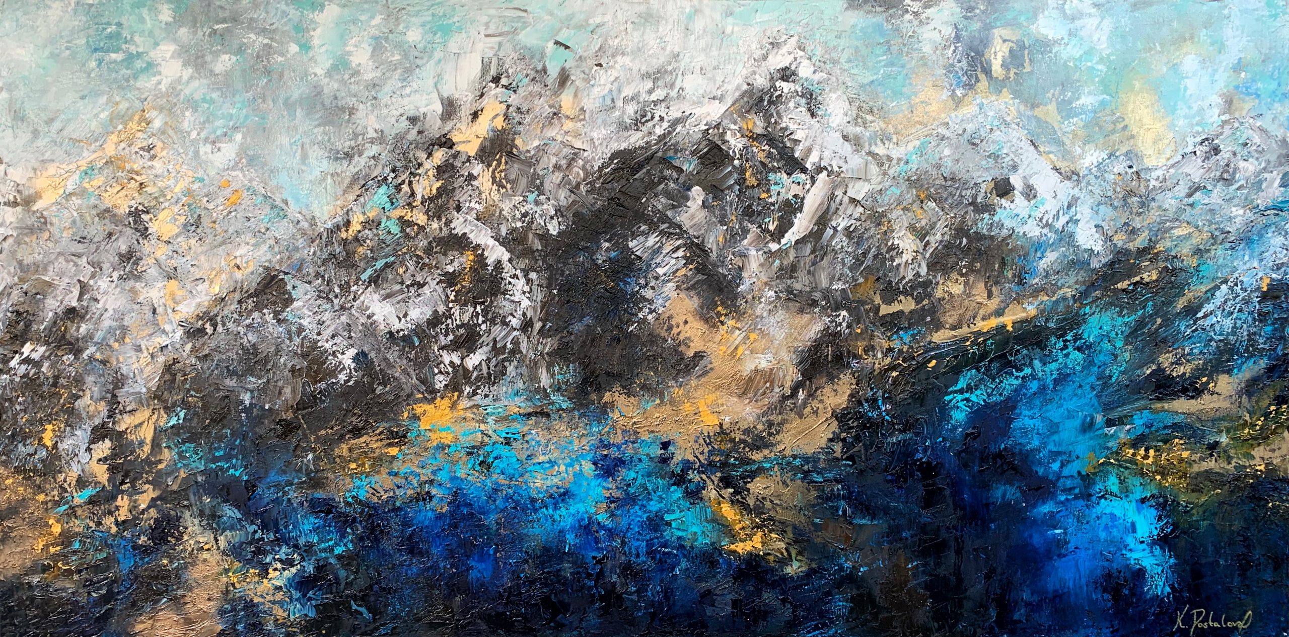 Artist’s signature on the back along with the name of the painting, year of creation and size