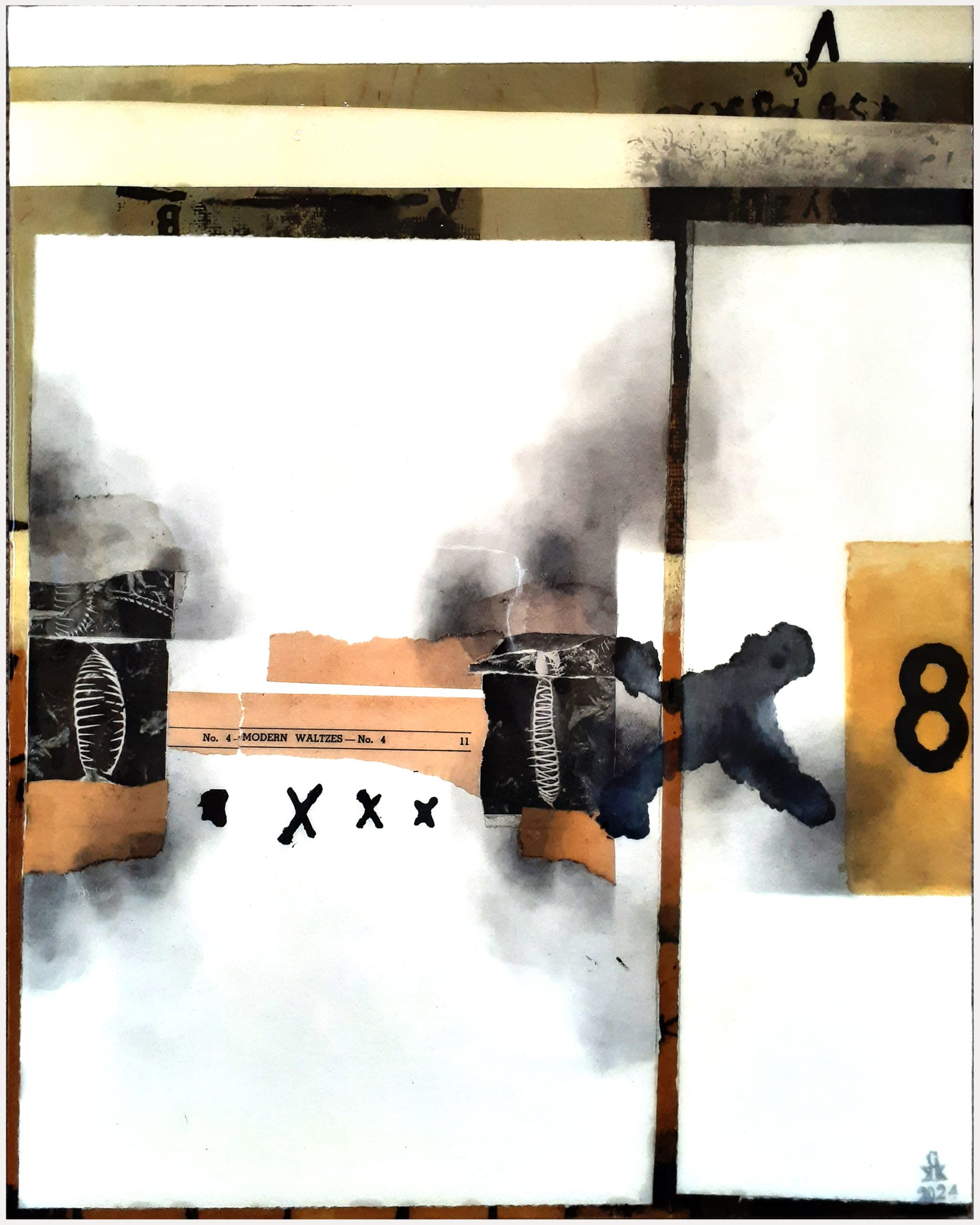 ” Eleven X 8 ” is a original mixed media artwork by Melbourne abstract artist G Kustom Kuhl that brings back to life vintage music sheets, papers and prints giving them a whole new meaning and existence. The work has been worked into a grid format that allows coloured background work to peep through that adds to the final representation of the work. These are the deep hidden aspects of growth, past thoughts and emotions that always have influence on the learnings of us all. The central abstract work explores the the attraction of many aspects that have been transformed into something new allowing for a new found freedom. Artwork is a mixed media piece that includes pencils, inks, paint, vintage papers, vintage images and stencils all on artist quality paper, Saunders Waterford 320gsm paper that has been adhered to board. Clear coated with a polyurethane gloss coats for protection and finished result. Painted black sides. Supplied with a certificate of authenticity.