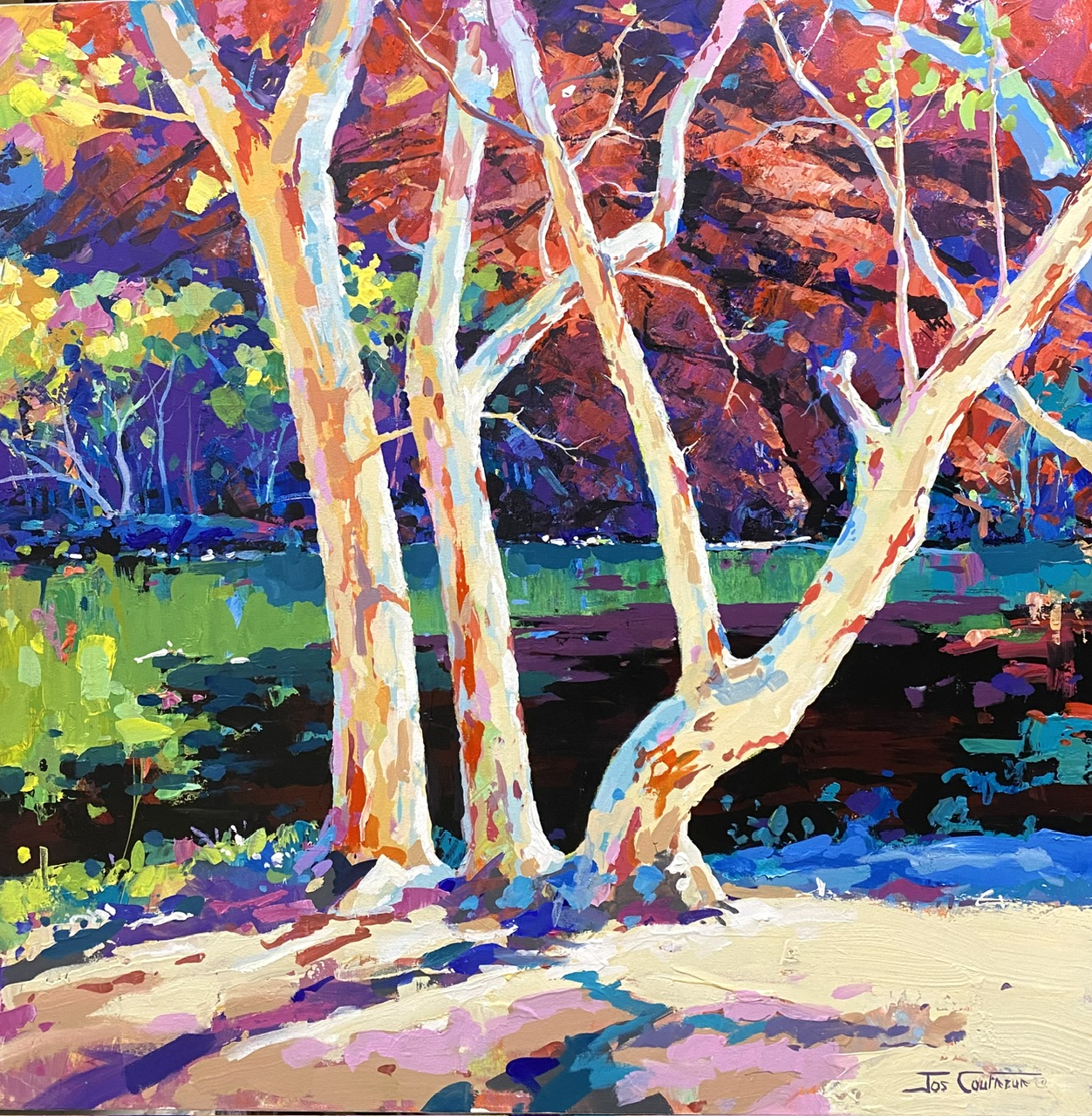 Painted from reference photos we took while on a half lap around Australia. We spent some time in the red centre and the MacDonnell Ranges. Ellery Creek Big Hole is amazing place, but the water is very icy! Only a few people were brave enough to go in!