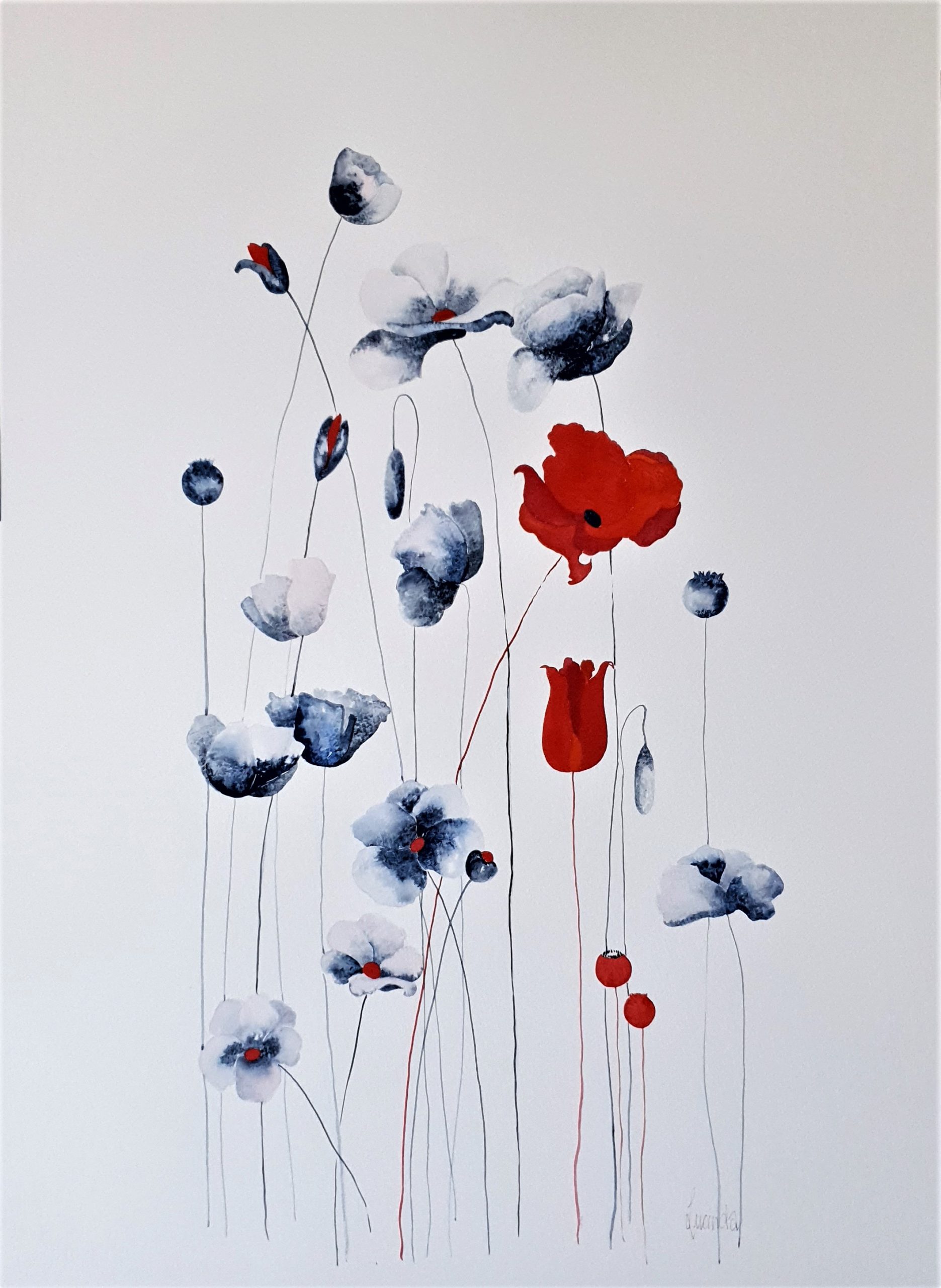 Love painting poppies – they are always so interesting as they reach up to the sun.