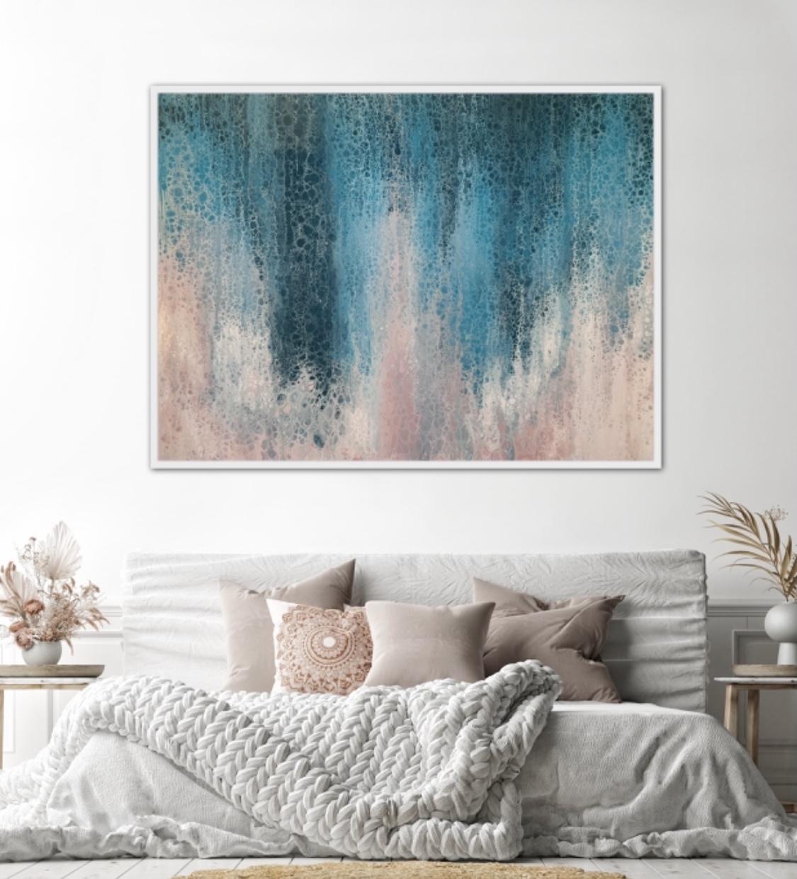 ‘In situ’ photos have been included to help with visualisation of the artwork in your home. In situ photos provided were created using the ArtStage app and may not be perfectly to scale. This being said, every effort has been made to represent the size of the art accurately but please read the dimensions of the artwork to ensure it fits your space perfectly. Where provided, photos of framed art are for illustrative purposes only.