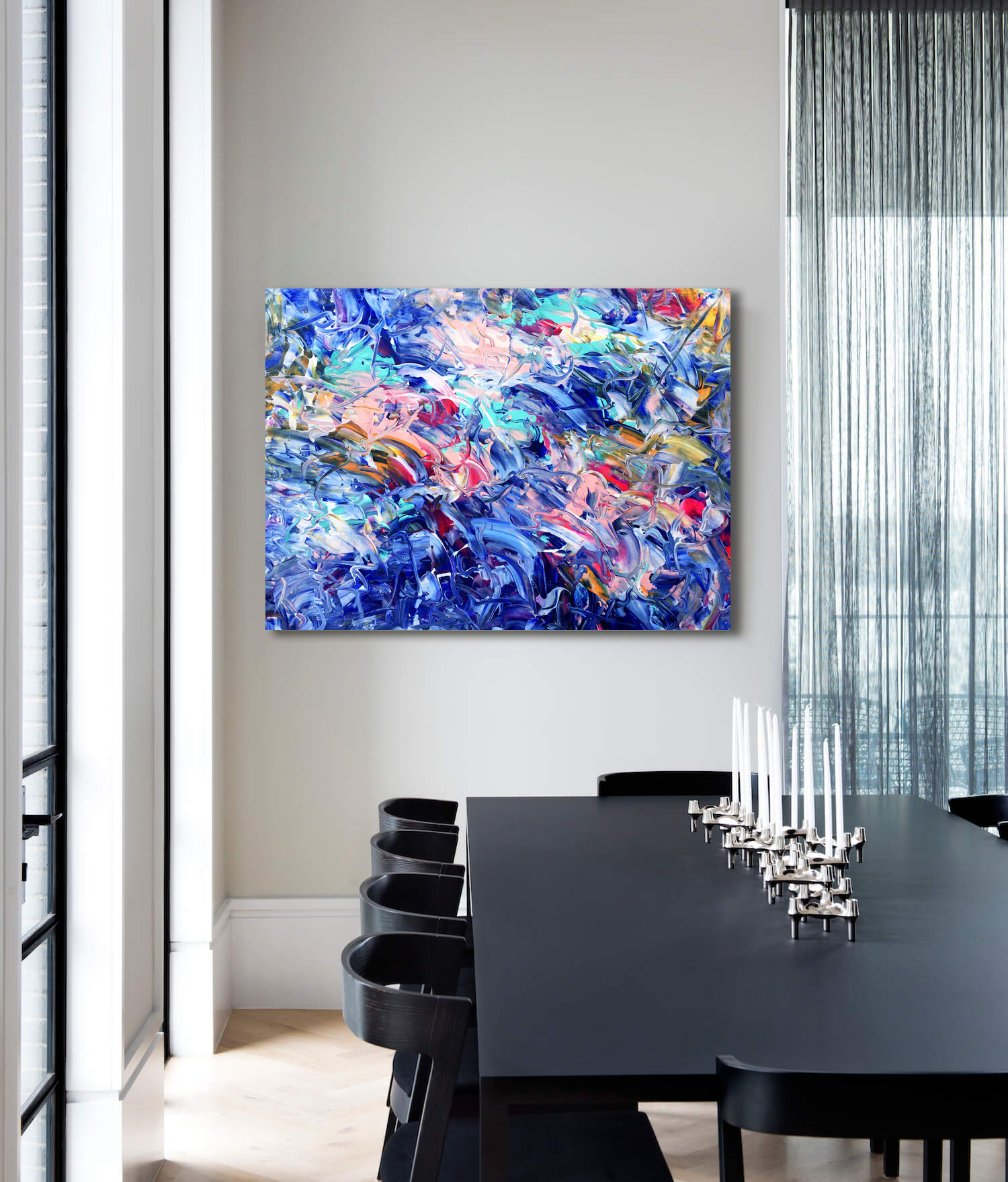 This work explores being completely immersed in one’s emotions, allowing any emotion to flow freely so that eventually it feels like they wash through you. It is an exploration of abstractionism.