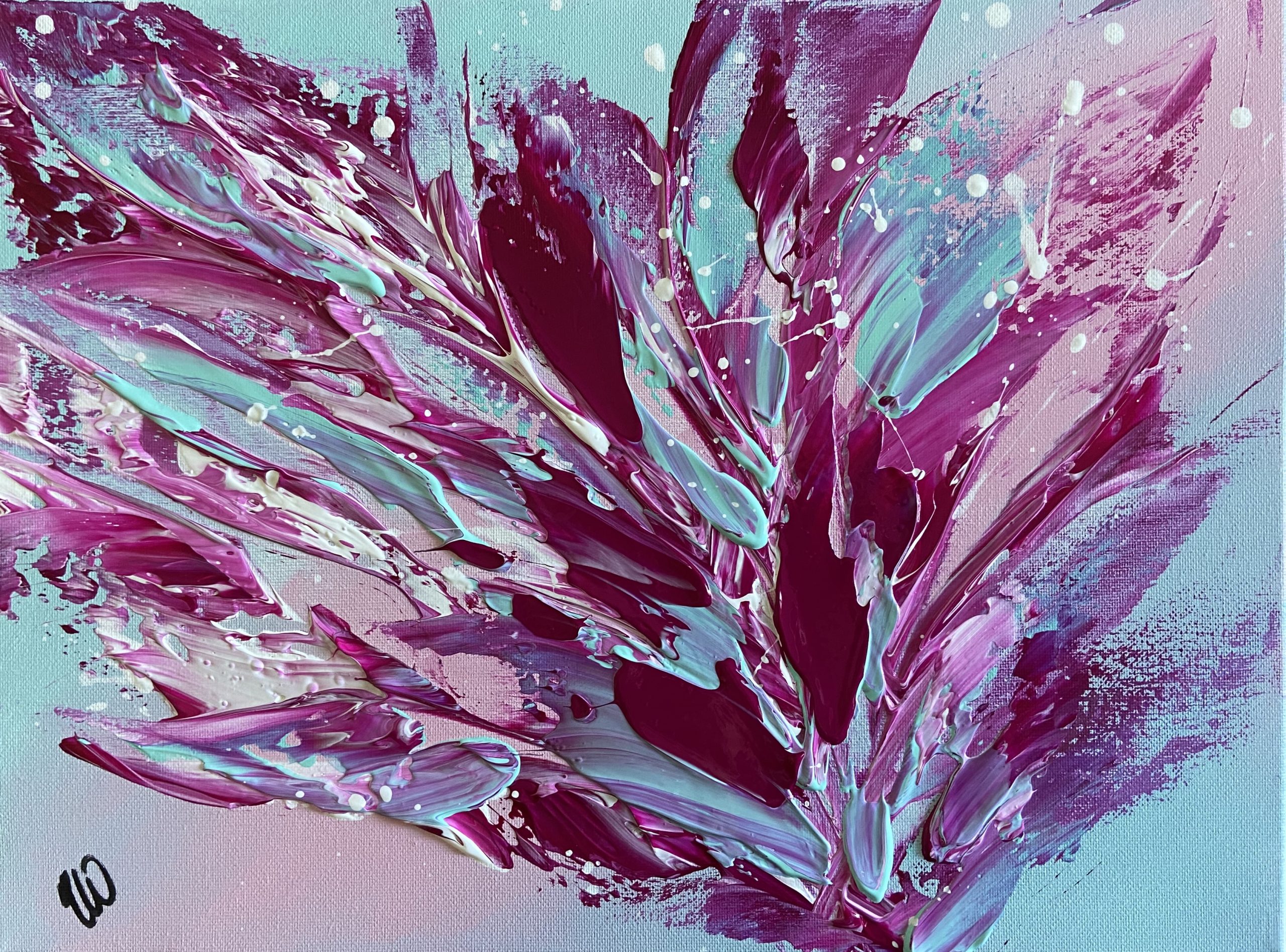 Enchanted by Carrie Welsh is a beautifully textured abstract piece with very pretty aqua and pinks. Acrylic on canvas, ready to hang. Watch how this painting was made on my YouTube!
