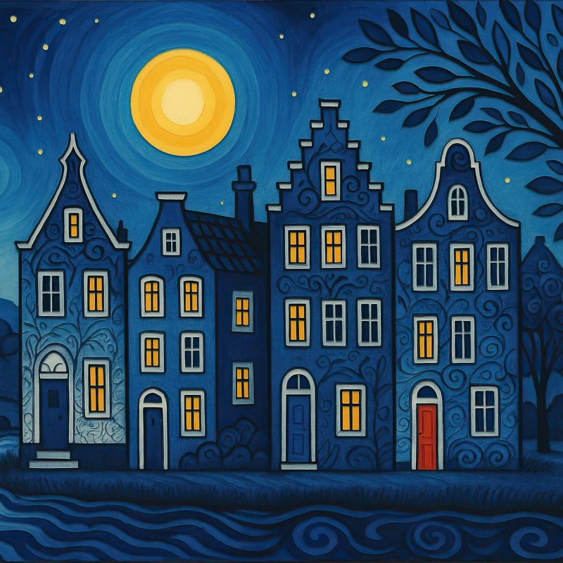 By blending collage, warm colours and blues and textures, this artwork comes to life with intricate details to captivate the viewers eye.