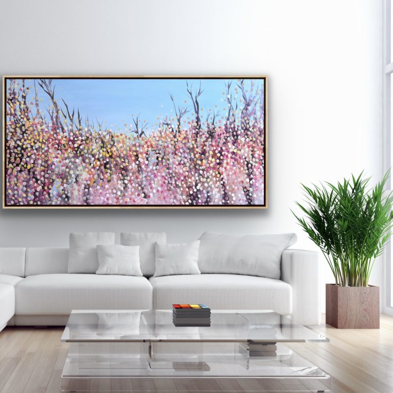 Endless Love by Theo Papathomas – Beautiful petals in the landscape scattered creating a bed of colours . Capturing the beautiful colours of the petals falling from the trees onto the landscape with a very textured background . This painting is painted with a pallet knife in oil paints. The painting is very thickly painted to give a very texture feel and to make you feel the petals are jumping out of the painting. The painting is signed and dated 2020 at the back and comes with a certificate of Authenticity.