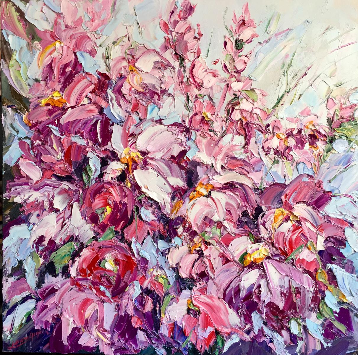I was inspired to create this piece after visiting Pink Moss, flower festival in Japan. These flowers come in blue,purple,pink and white. It looks like endless beauty of pink fields.