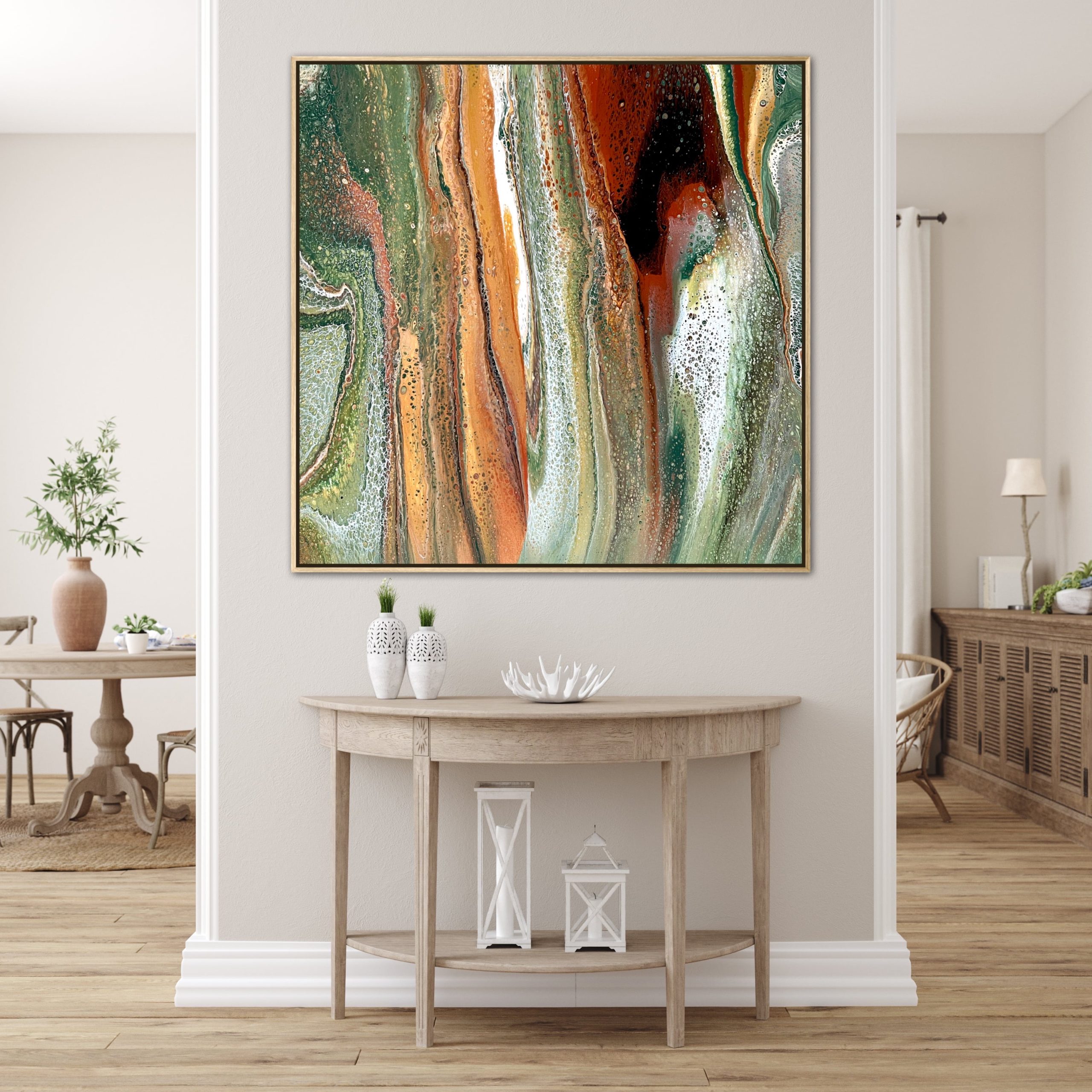 Endless Nature was created using various techniques combined to allow increased flow, interaction and separation of colours to create interesting patterns where pops of colour can be seen emerging from underneath. This added dimension adds lace and cells to the artwork creating an interesting and one of a kind painting that can never be replicated.