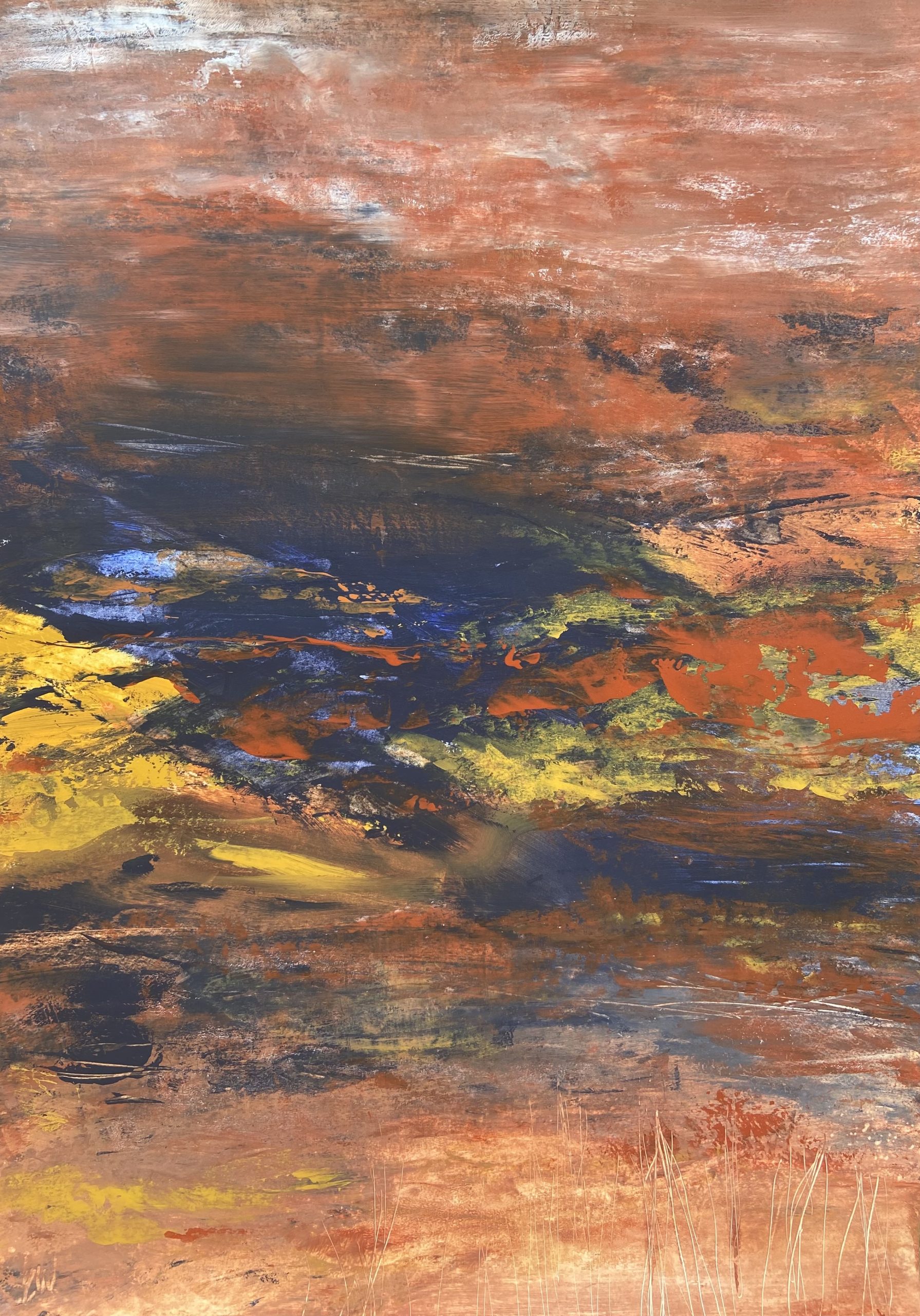 A beautiful abstract landscape painting. 59.4 x 42 cm (A2 size). Acrylic on paper. Frame not included. Requires framing.