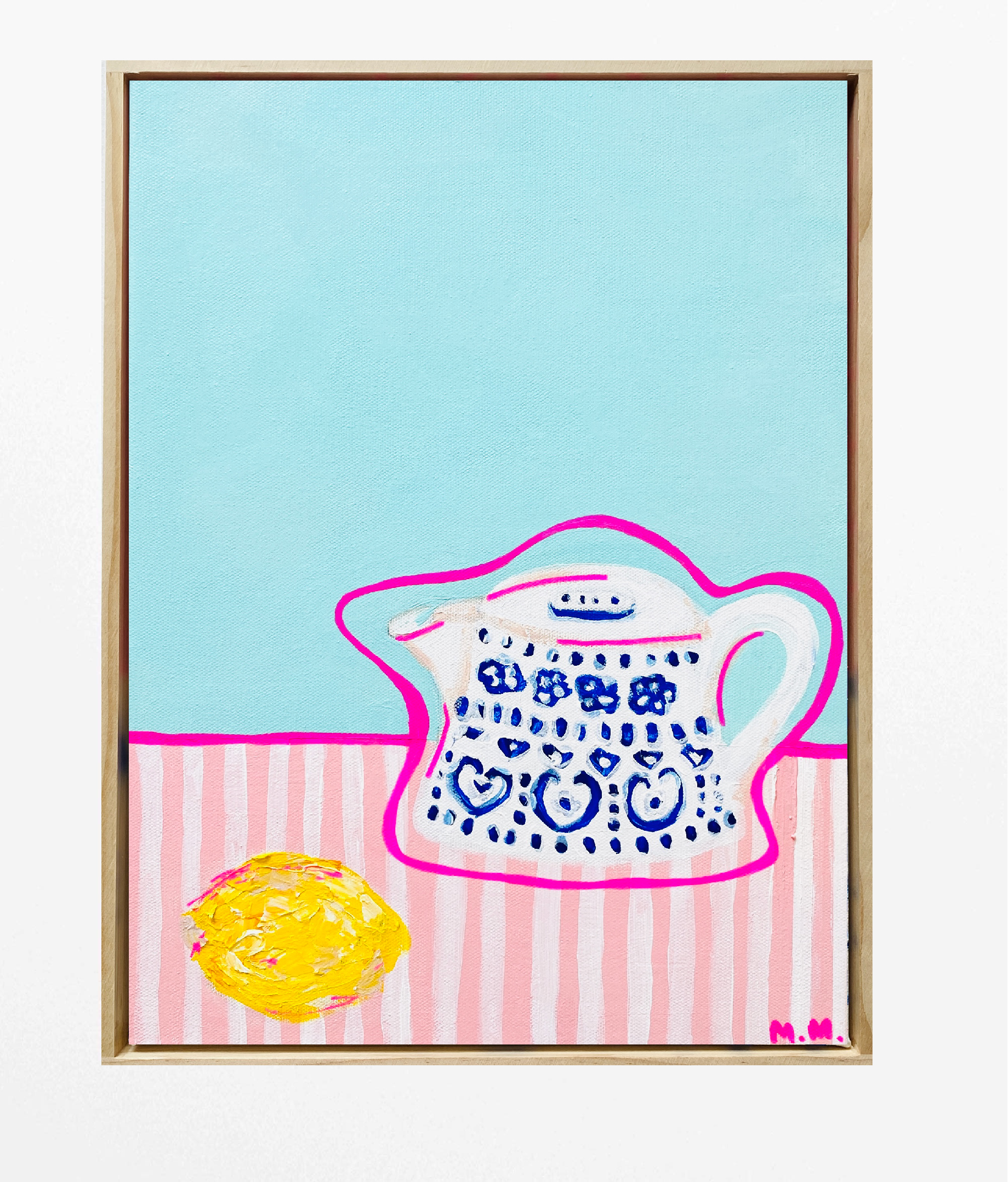 Enid’s Coffee Pot on PInk Stripes by Maggi McDonald – Leaning into painting some still life for the first time since art class in school over 30 years ago now.