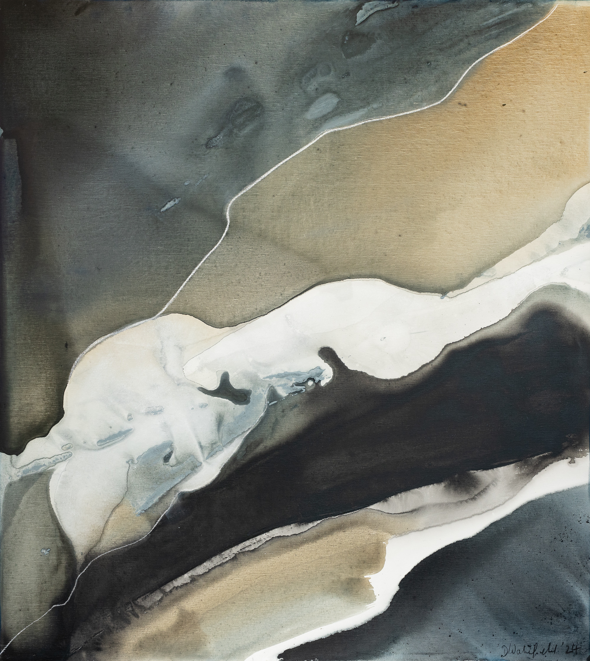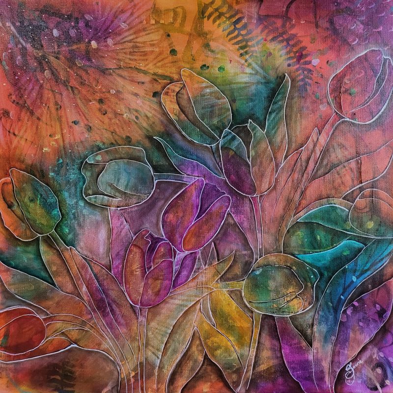 Enigma 3 by Dinah Wakefield is inspired by the light, the colours and the natural beauty of the Noosa region of Australia. “What I love most about Noosa is the interplay of light. From the oceans to the clouds, to the river estuaries and the hinterland, this canvas unfolds before me every day and finds expression in my paintings”.