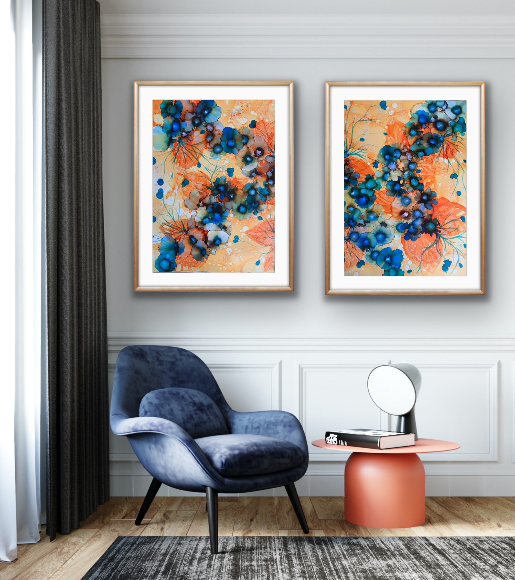 Original diptych 65 cm x 91 cm x 2 Alcohol ink on yupo paper sealed with high grade varnish and UV spray.