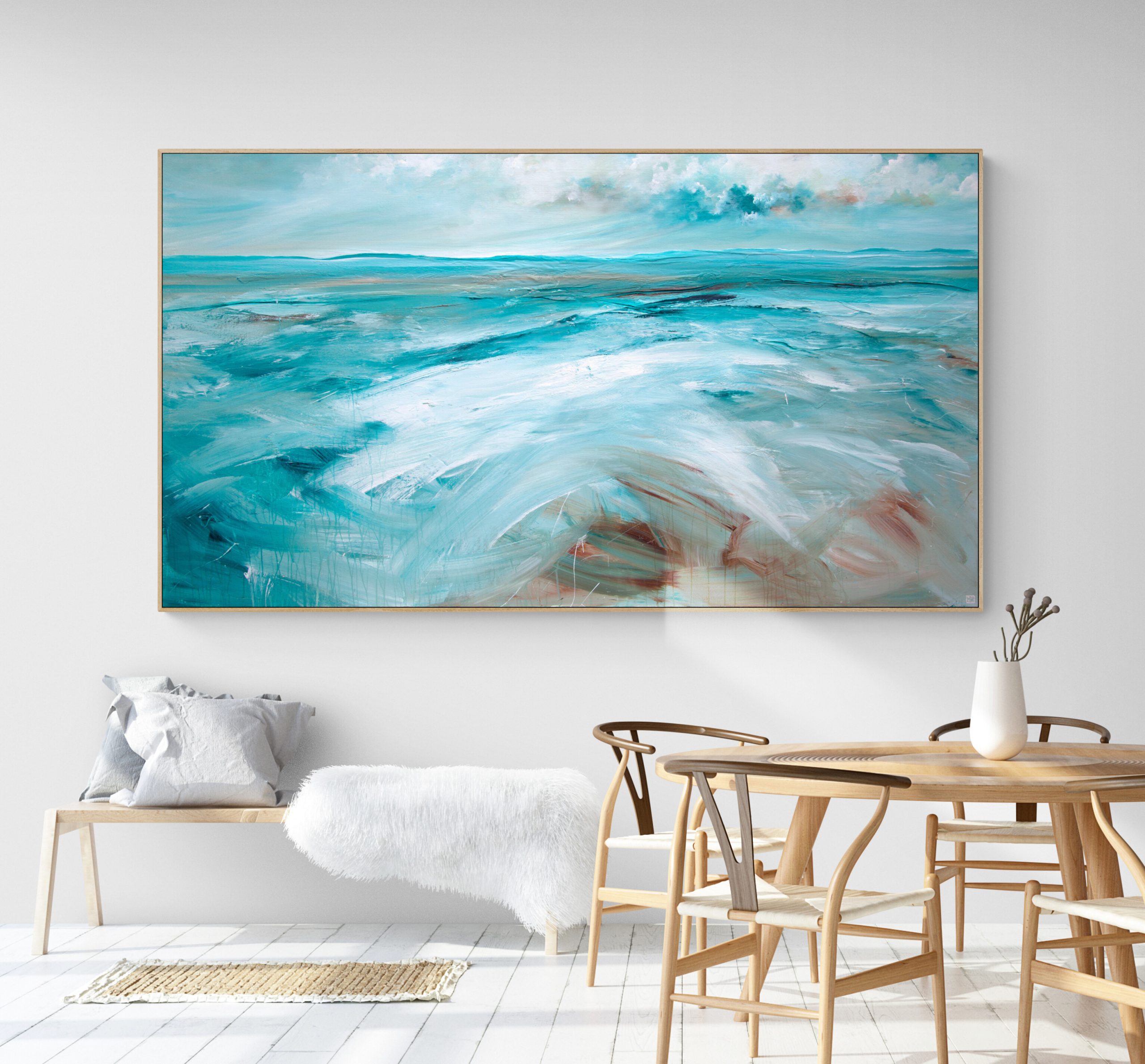 Enlightened Spring by Tania Chanter is inspired by the rich and vibrant tones of an Australian seascape and the changes of light and mood throughout the day. Tania’s hope is that this painting brings a sense of calm to the room where it lives, and that is makes the people who enter the room feel as though a part of nature is right there with them.