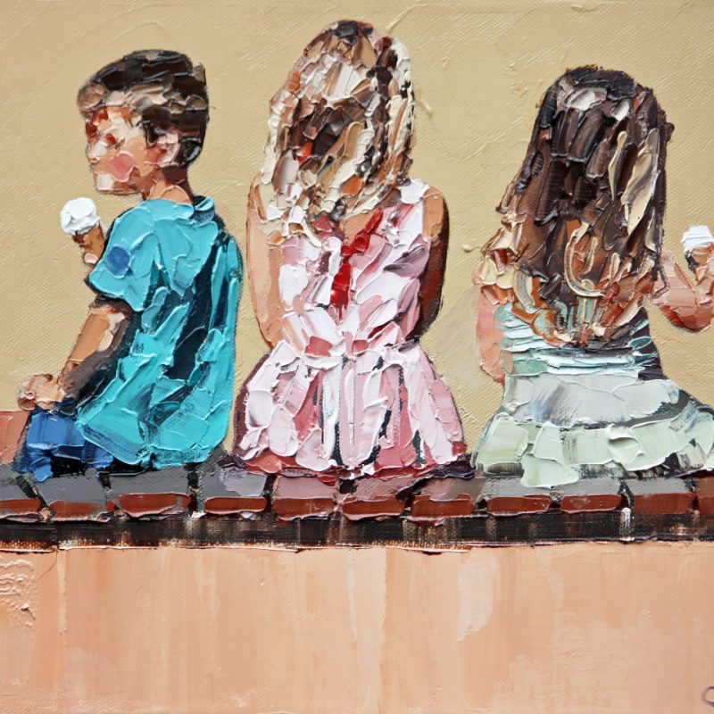 The leaves are light on the top getting darker and darker within each layer creating great depth within the painting. A little bird can be seen underneath, adding a touch of whimsy to the piece.