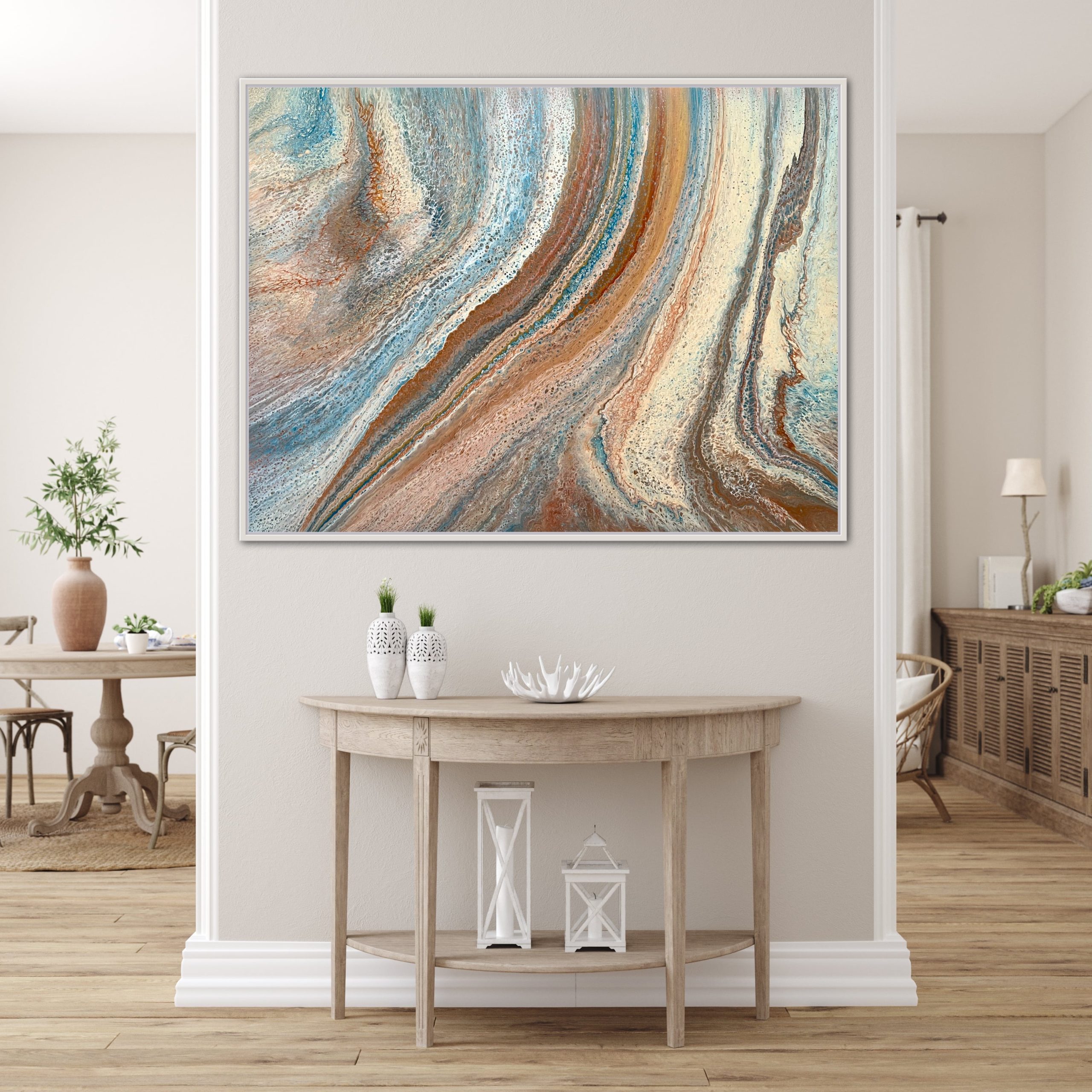 ‘In situ’ photos have been included to help with visualisation of the artwork in your home. In situ photos provided were created using the ArtStage app and may not be perfectly to scale. This being said, every effort has been made to represent the size of the art accurately but please read the dimensions of the artwork to ensure it fits your space perfectly. Where provided, photos of framed art are for illustrative purposes only.