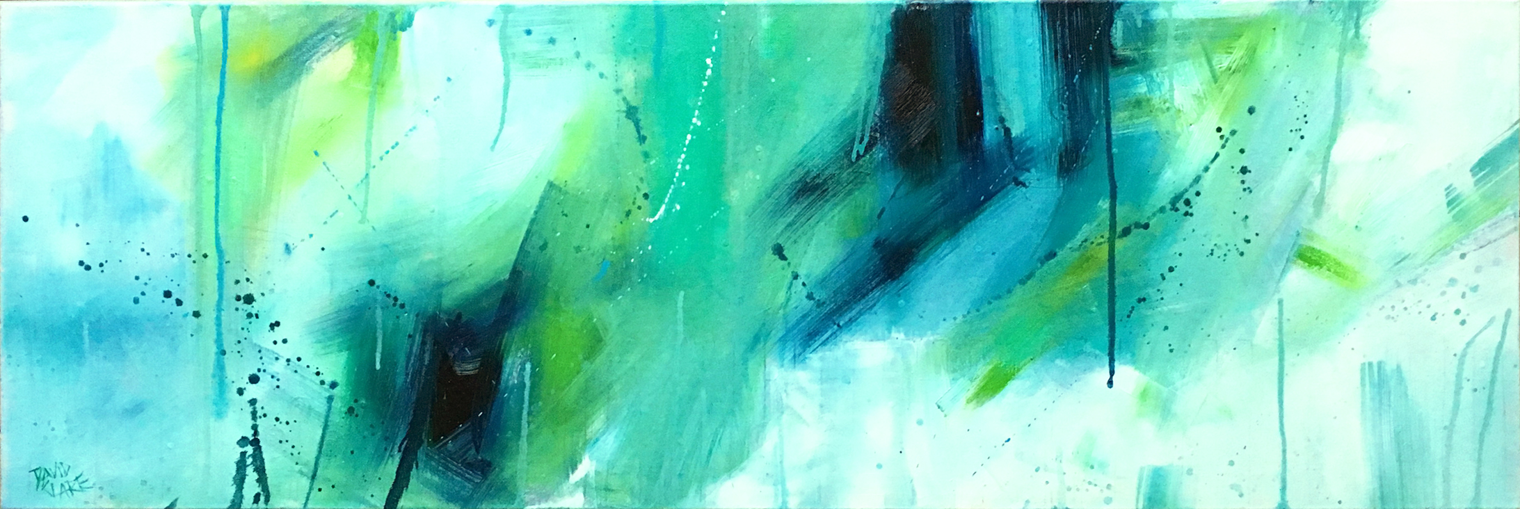 Envy by David Clare – Whilst painting over an older painting that I wasn’t happy with, I got a bit carried away with some left over green and blue paint, and “Envy” appeared. An unintentional abstract that happened so much in the moment, that if you look closely enough, some of the original artwork is slightly visible. I was tempted to apply more paint to cover it completely, but that could have spoiled the moment, so I left it be. It just adds to the interest, and story of “Envy”.