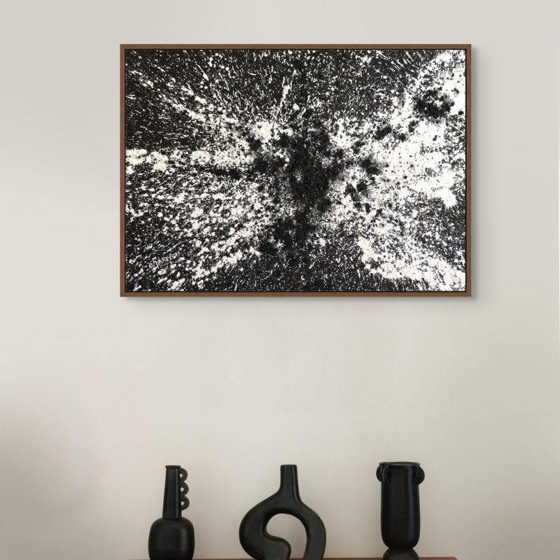 You also have the option to add a floating frame in natural, black, or white at checkout to suit your space. While Ephemeral Streams looks beautiful on its own, framing can give it that extra presence in your room.