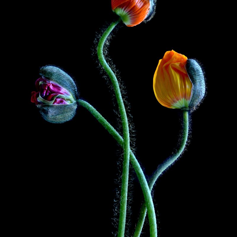Ephemeral Grace -Tulips with their delicate curly leaves are such a beautiful flower and always evoke thoughts of Amsterdam, however the tulip emerged first from the Himalaya area and then from Turkey as early at 1000AD and was first a wildflower. As a study close up, the detail in the petals are stunning and creates a wonderful abstraction of the flower. Always inspired by the life cycle of flowers, every stage represents its own beauty.