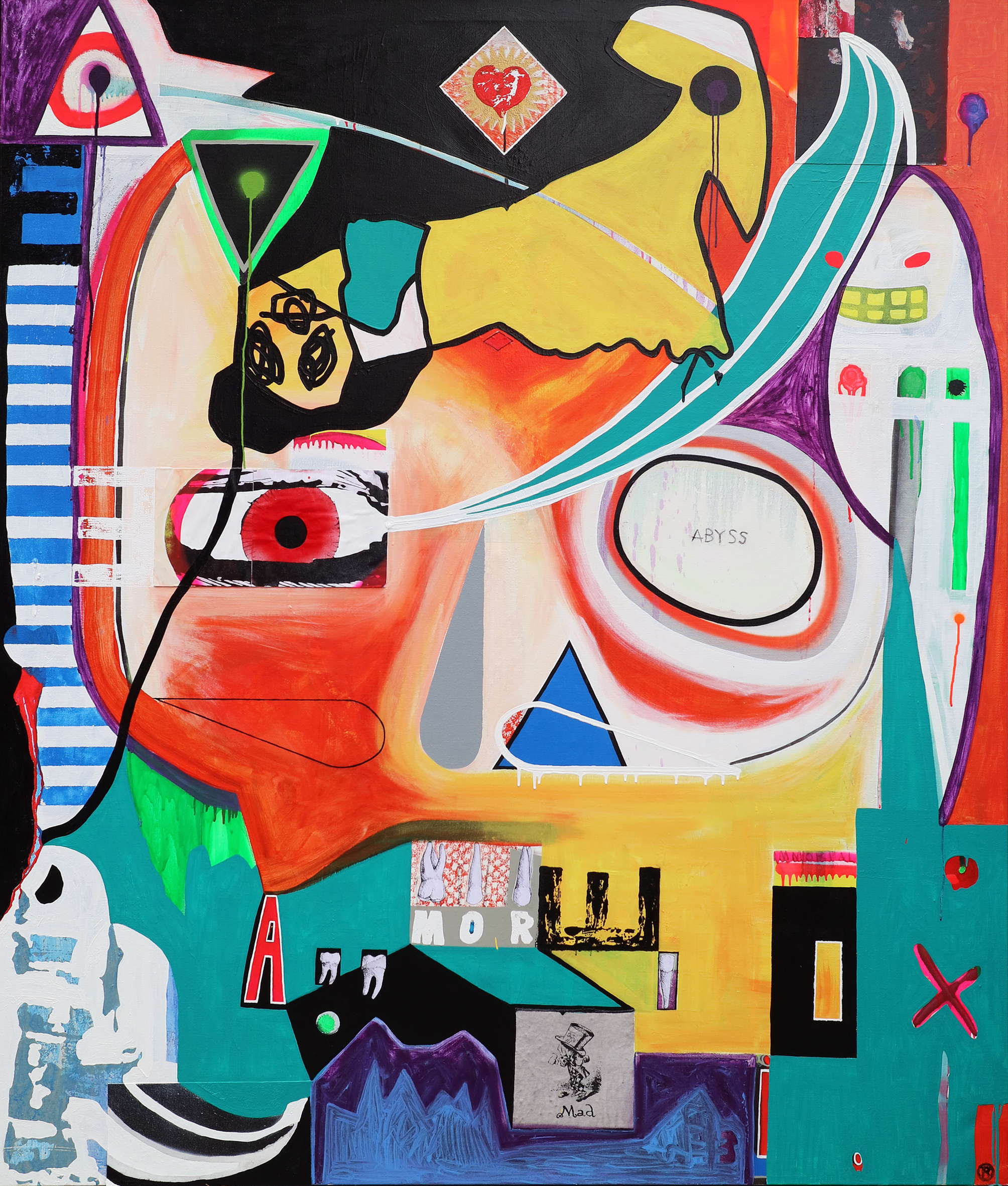 Mixed media – acrylic oil stick spray paint chalk charcoal and collage on canvas