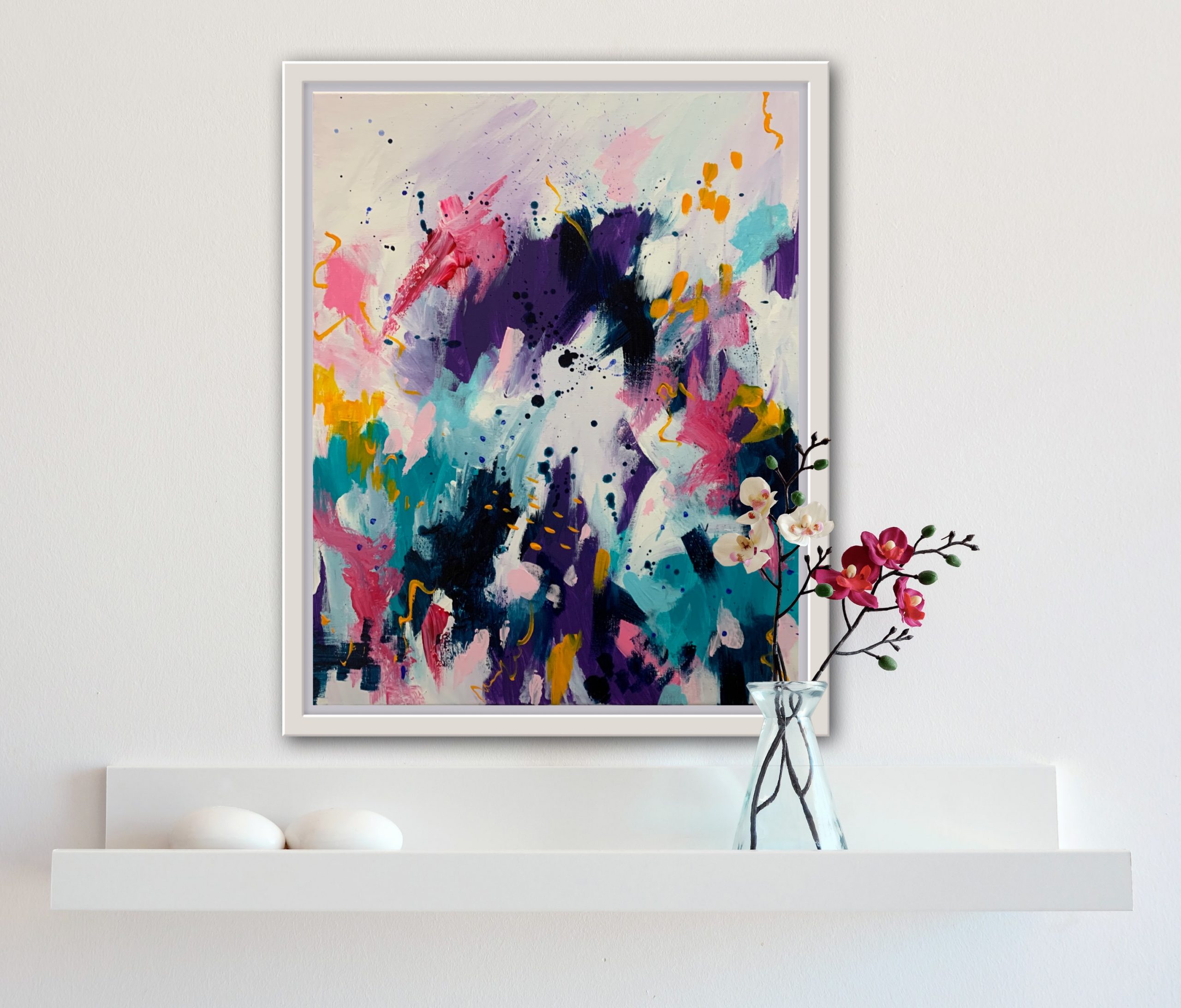 Original abstract artwork. Acrylic Paint on streched canvas, framed, and ready to hang. Signed with a certificate of authenticity.