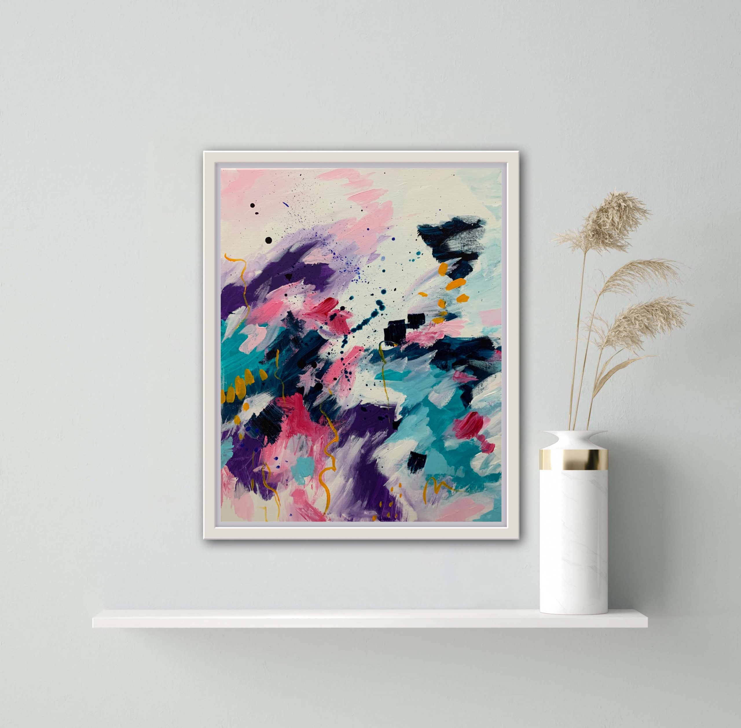Original abstract artwork. Acrylic Paint on streched canvas, framed, and ready to hang. Signed with a certificate of authenticity.