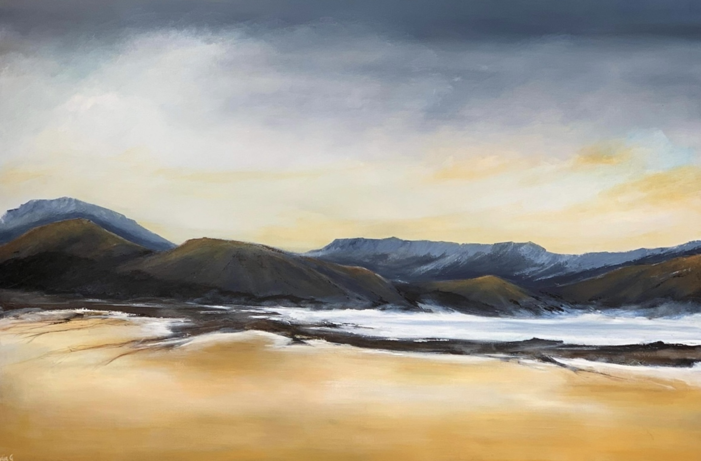 Inspired by the incredible diversity of the Australian landscape from its rugged coastlines, snow-capped mountains and the idiosyncratic landscape of the sandy desert with its sun baked monoliths and rainforests. The painting continues on the edges edges and comes with professional wire hanger and a Certificate of Authenticity.