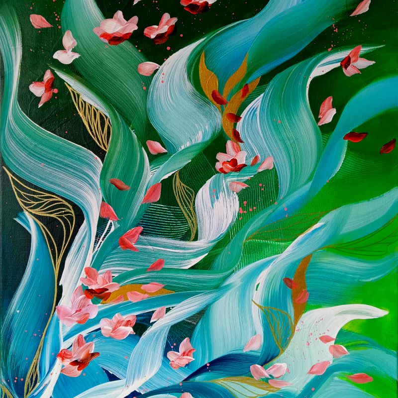 Escaping The Fishbowl by Cathy Gilday – This mixed media abstract piece, expresses my thoughts on how, for me, art is a form of escapism. It may seem a little self endulgent, but art has the ability to transport me through imagination and self expression.