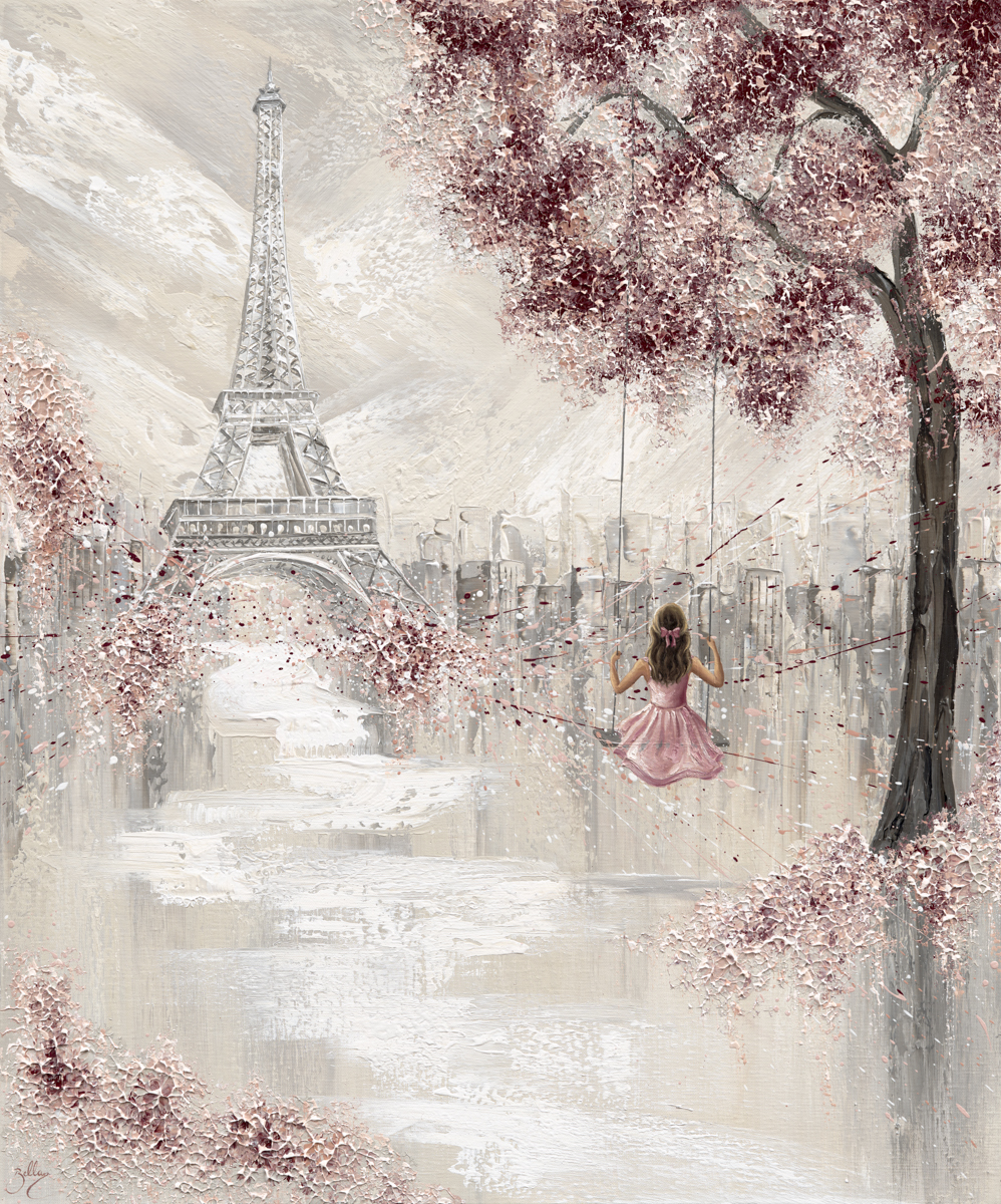 Eternal Play is a world where the Eiffel Tower touches the clouds, and every swing takes you higher into the sky. The trees blush with pink blossoms. The city fades away, leaving only the joy of the swing where time stands still and the world is as wonderful as a child’s dream. Here, the swing never stops, and laughter echoes forever in the air.