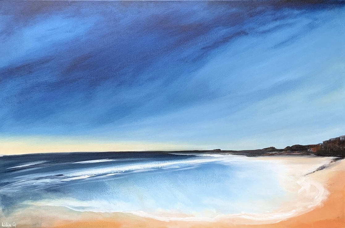Painted in memory of my young cousin/goddaughter Michelle who found solace and comfort being near the ocean …..the beach is now eternally yours.
